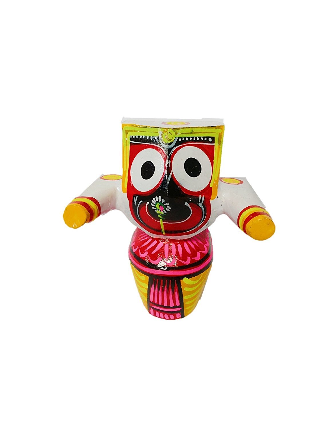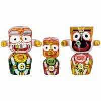 STONE WORK Neem Wood Lord Jagannath Baladeva and Subhadra (4 Inches Height Multicolour)
