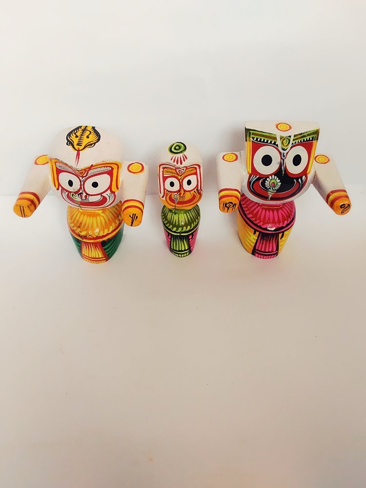 Lord Jagannath Baladeva and Subhadra Original Neem wood 4 Inches height for your home or office or Car Dash Board