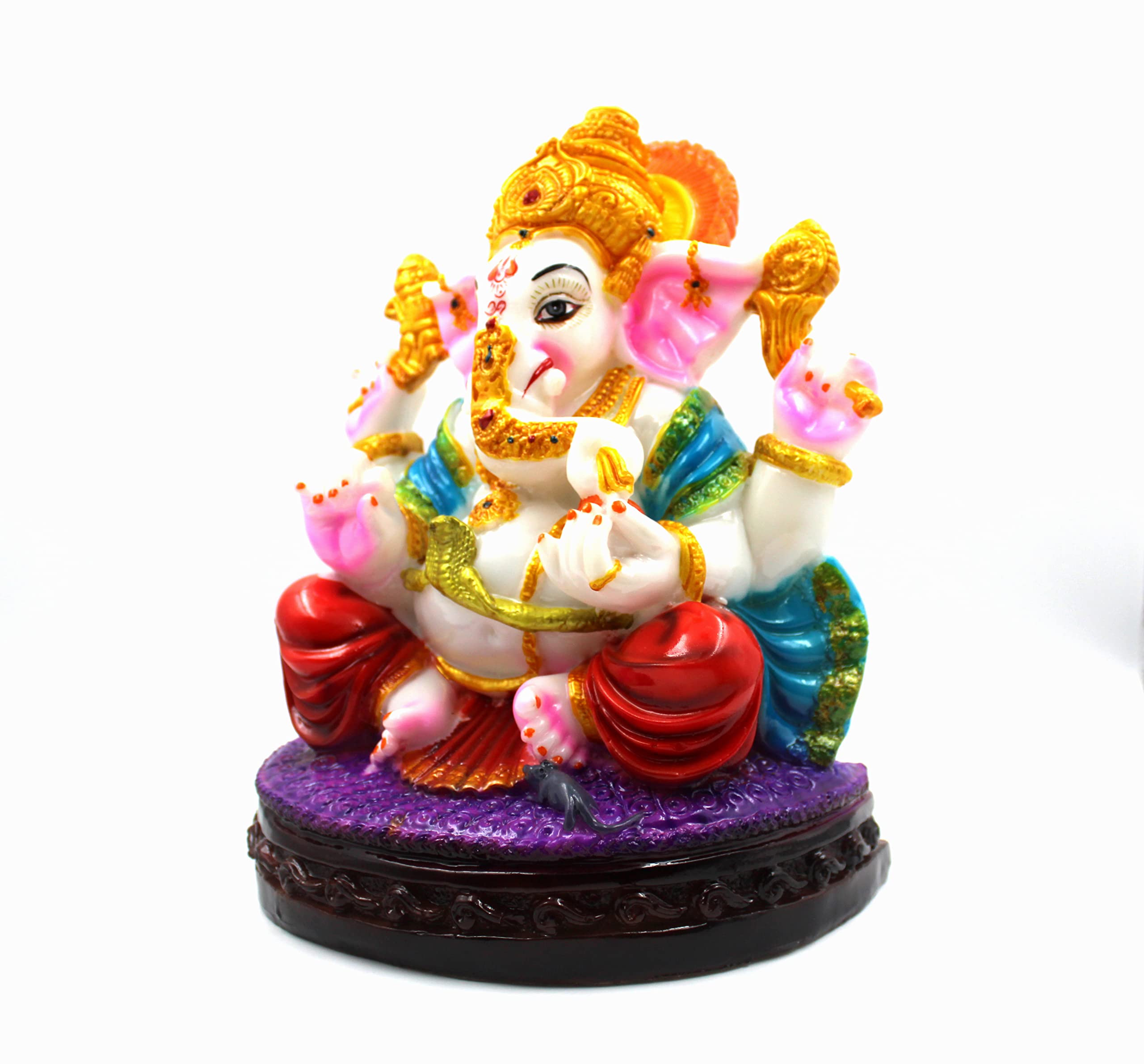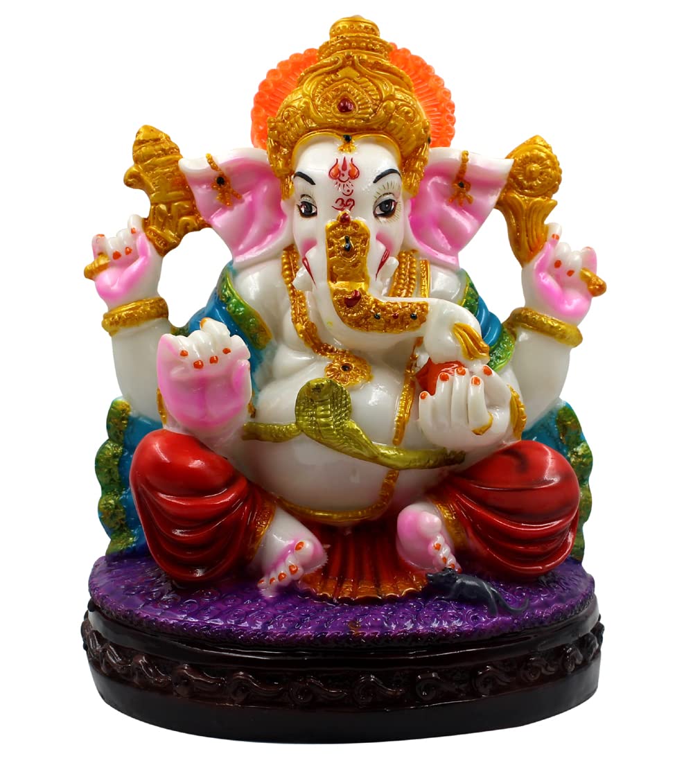 HomeHomeSpiritualIdolsSTONE WORK Poly Resin Hand Made Scupluture of Lord Ganesha in Seating Position with Dynamic Multi Colour Ideal for Home puja and Gifting Purpose.(HXWXD=26X20X15) cm