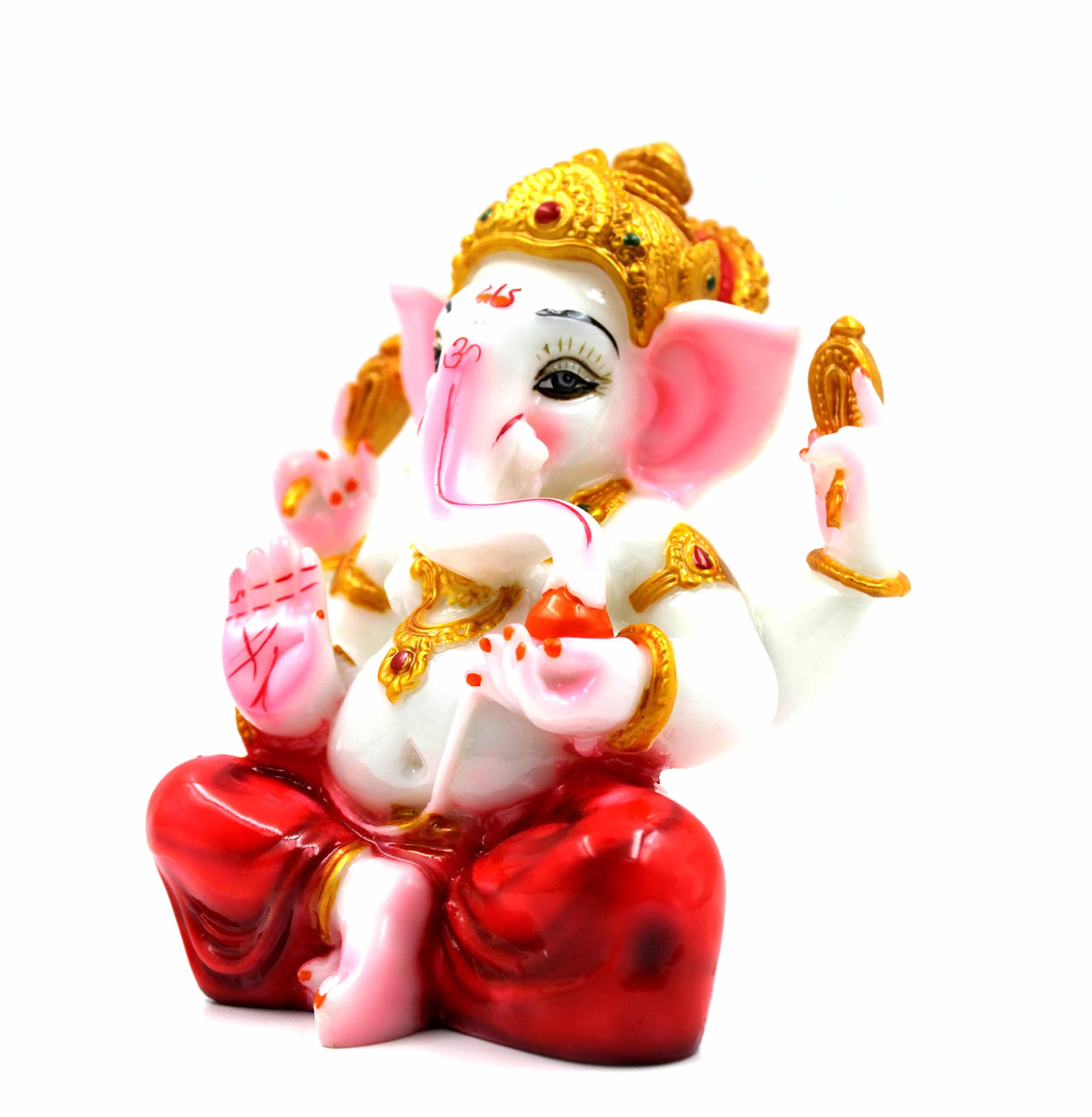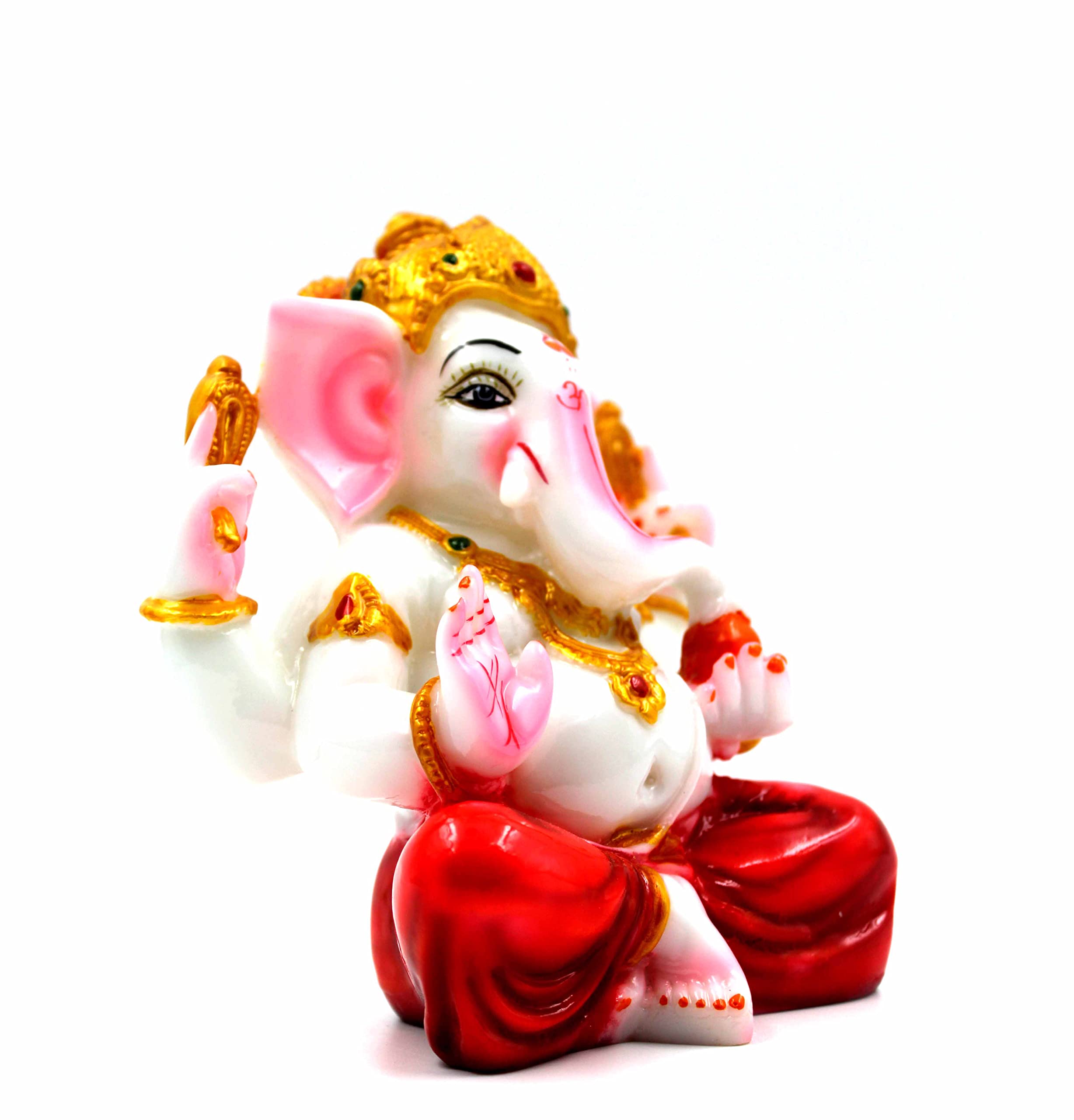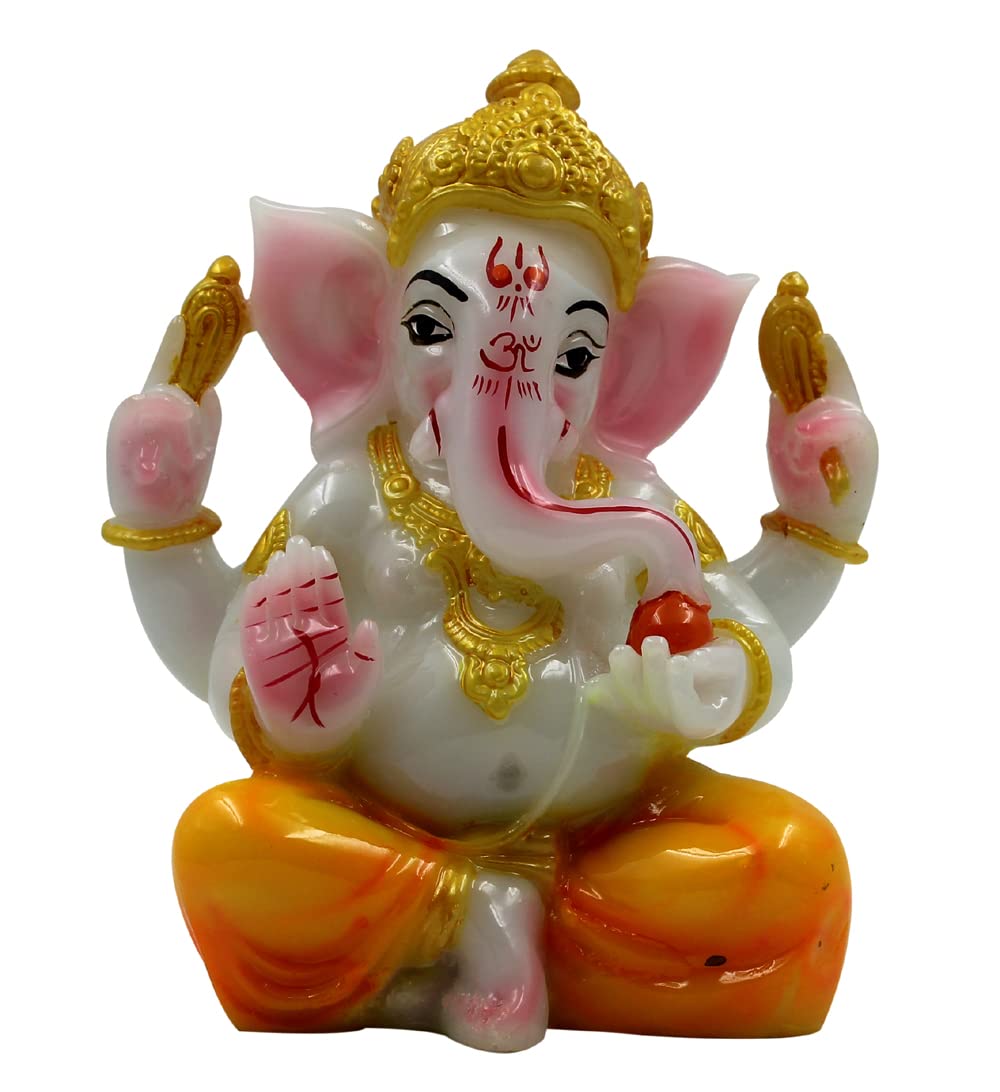 HomeHomeSpiritualIdolsSTONE WORK Poly Resin Hand Made Scupluture of Small Mukut Ganesha Looking Cute with Dynamic Multi Colour Ideal for Home puja and Gifting Purpose.(HXWXD=17X14X8) cm