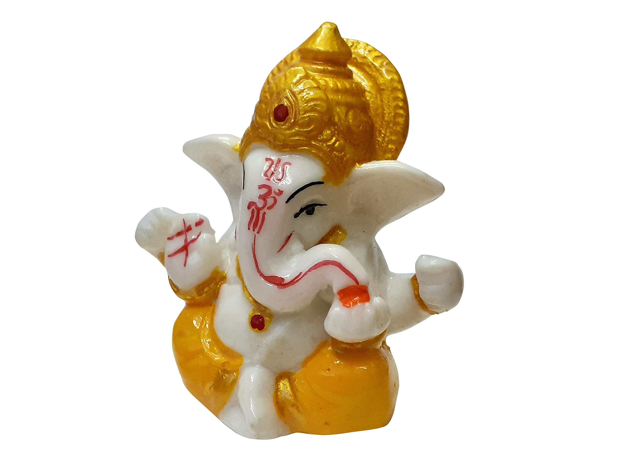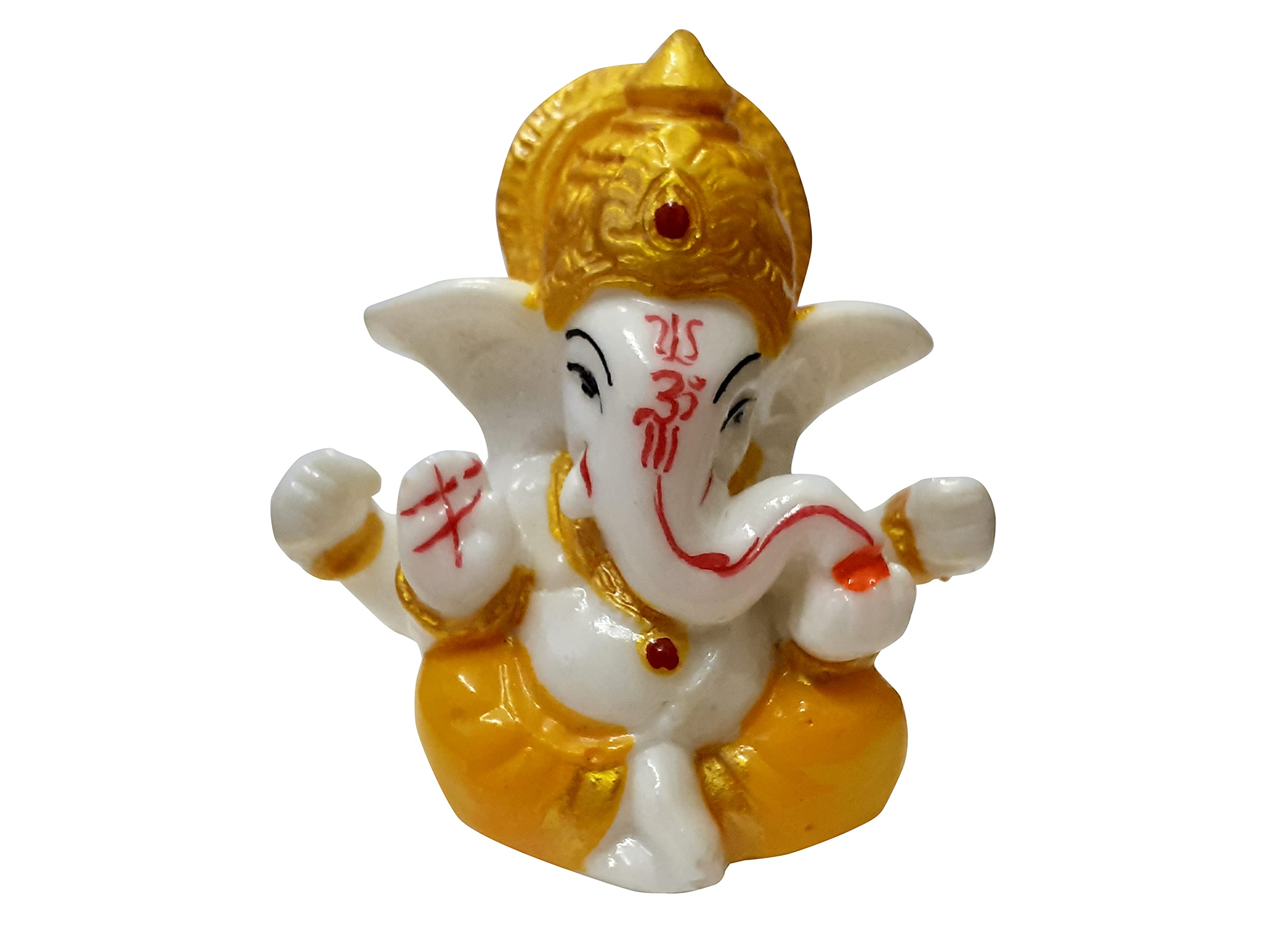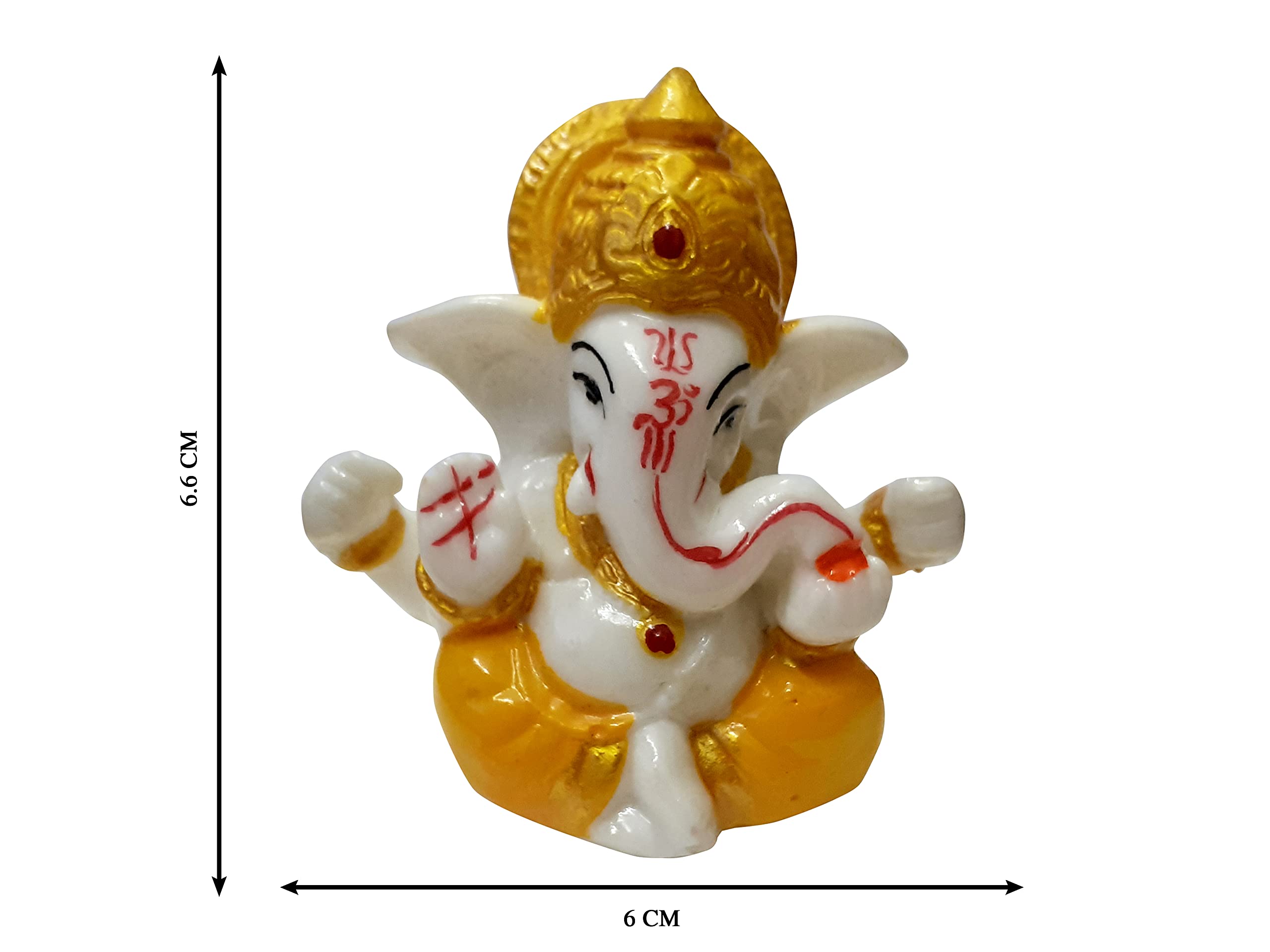 STONE WORK Poly Resin Small Yellow Mukut Ganesh Sculpture with Dynamic Colour for Puja Room Or Home Decoration. (H*W*D:7*6*3) cm