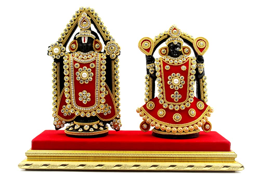 HomeHomeSpiritualIdolsSTONE WORK Present A MDF Material Platform with Sculpture Of Venkateswara Thirupathi Balaji And Padhmavathi With Fully Decorate For Puja Room Or Home Decor.(H*W*D:21*28*12)cm