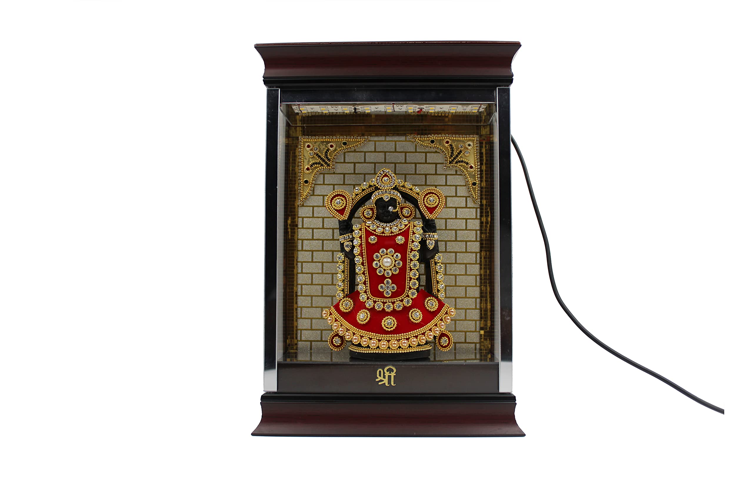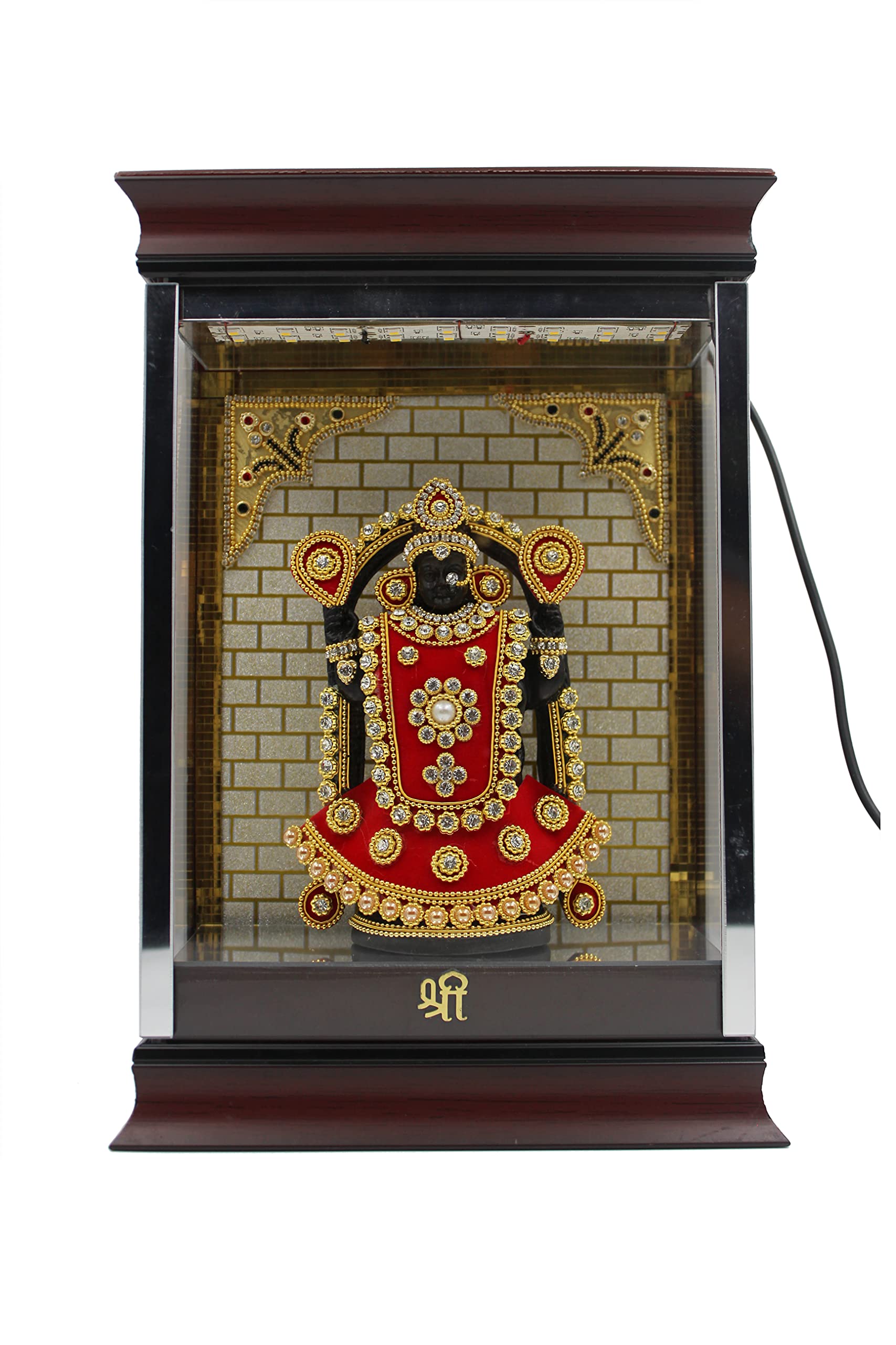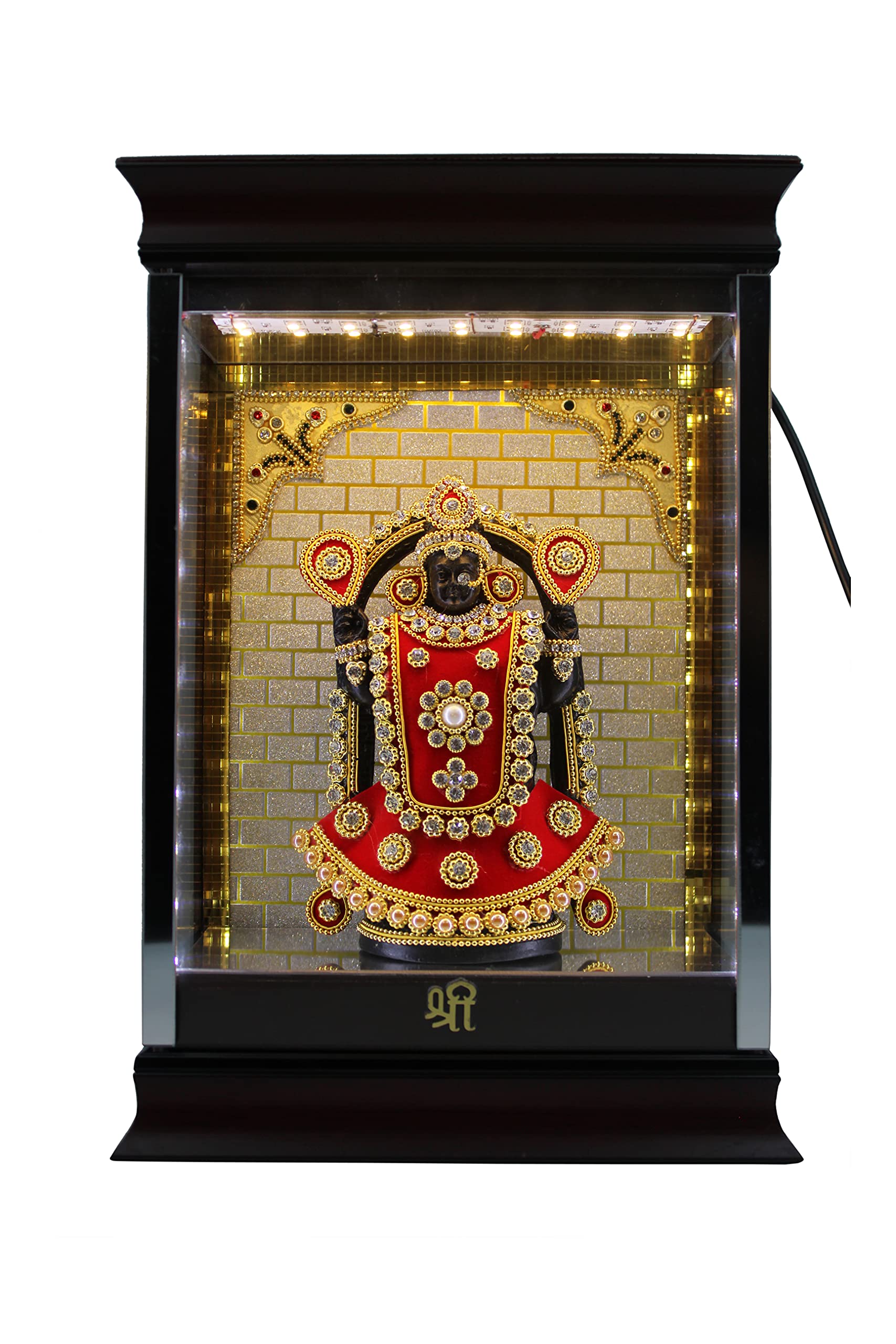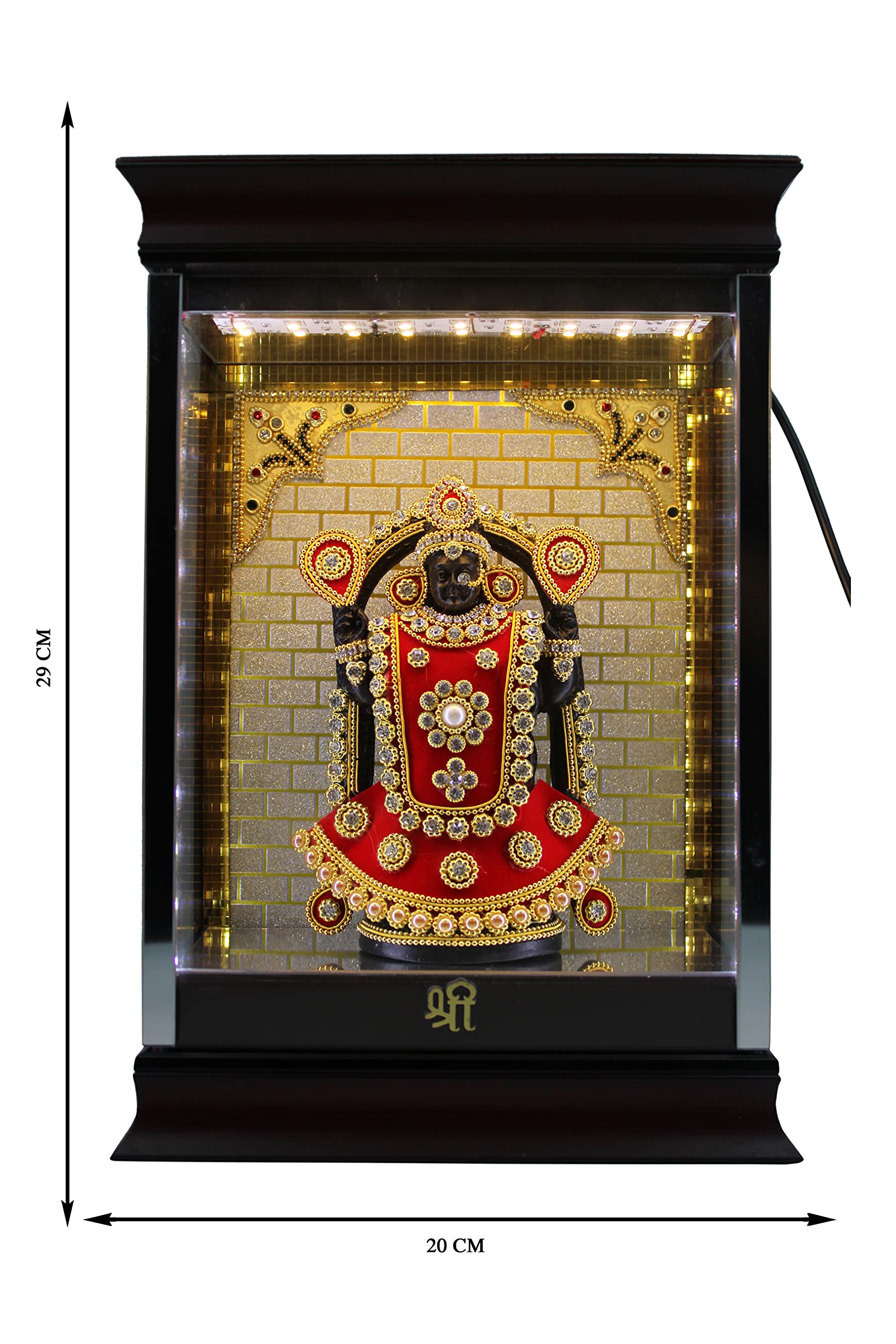 HomeHomeSpiritualIdolsSTONE WORK Present Designer Acrylic Imported Cabinet With Poly Resin Hand Made Scupluture Of Padhmavathi Maa With Full Decorate For Puja Room Or Home Decor H*W*D:29*20*11 cm