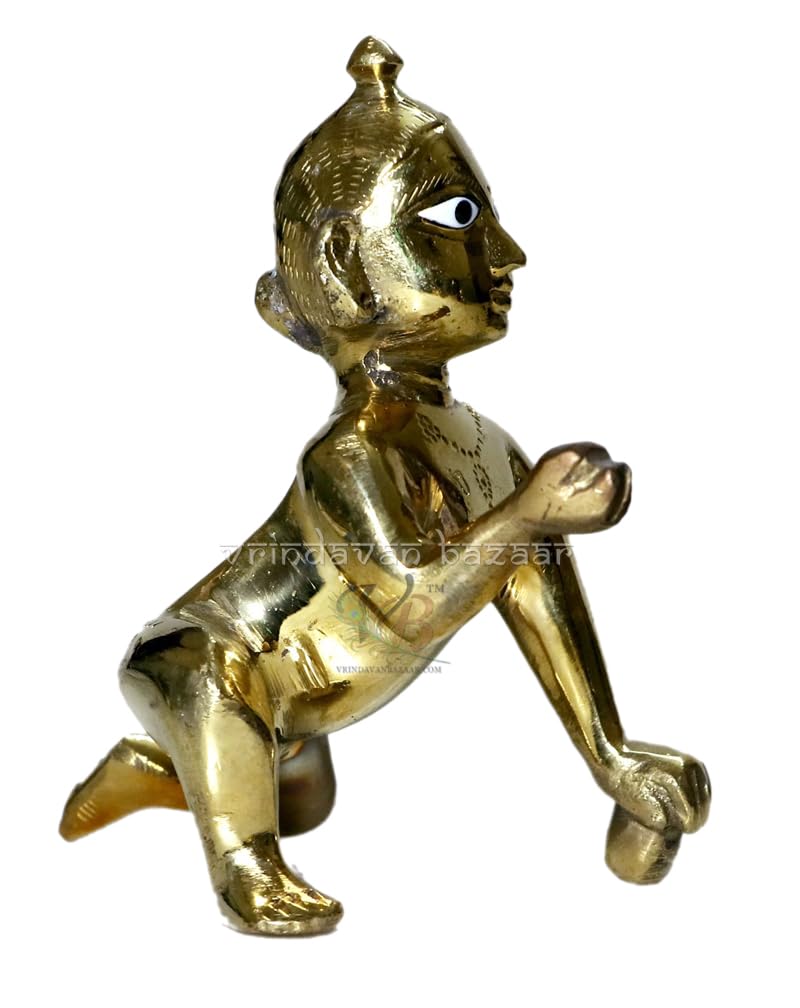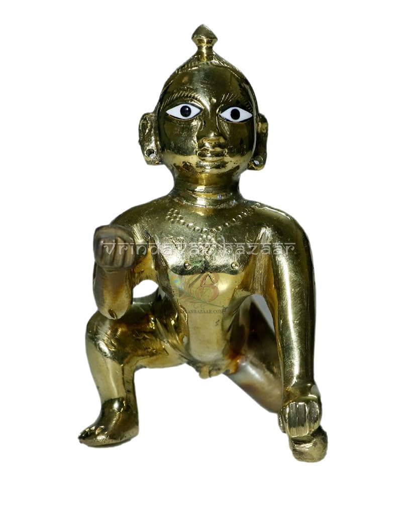 Brass Laddu Gopal Ji No. 5 Material: Brass Color: Golden Weight(Grams): 980 Height(inch): 5.75"