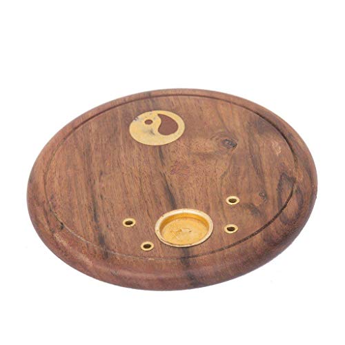 Handmade Wooden Round Shape Incense Stick Holder/Agarbatti Stand with Brass Work
