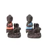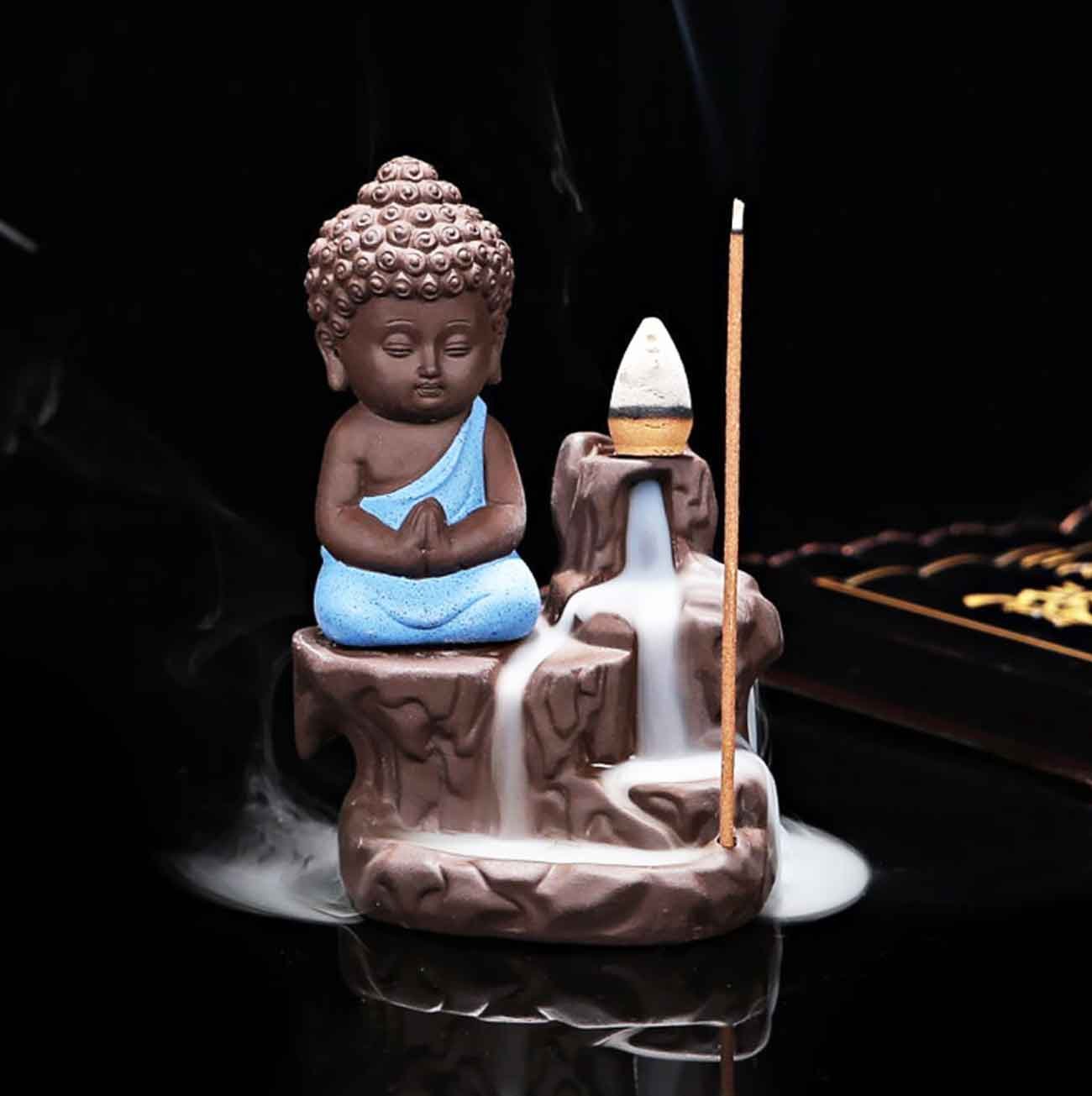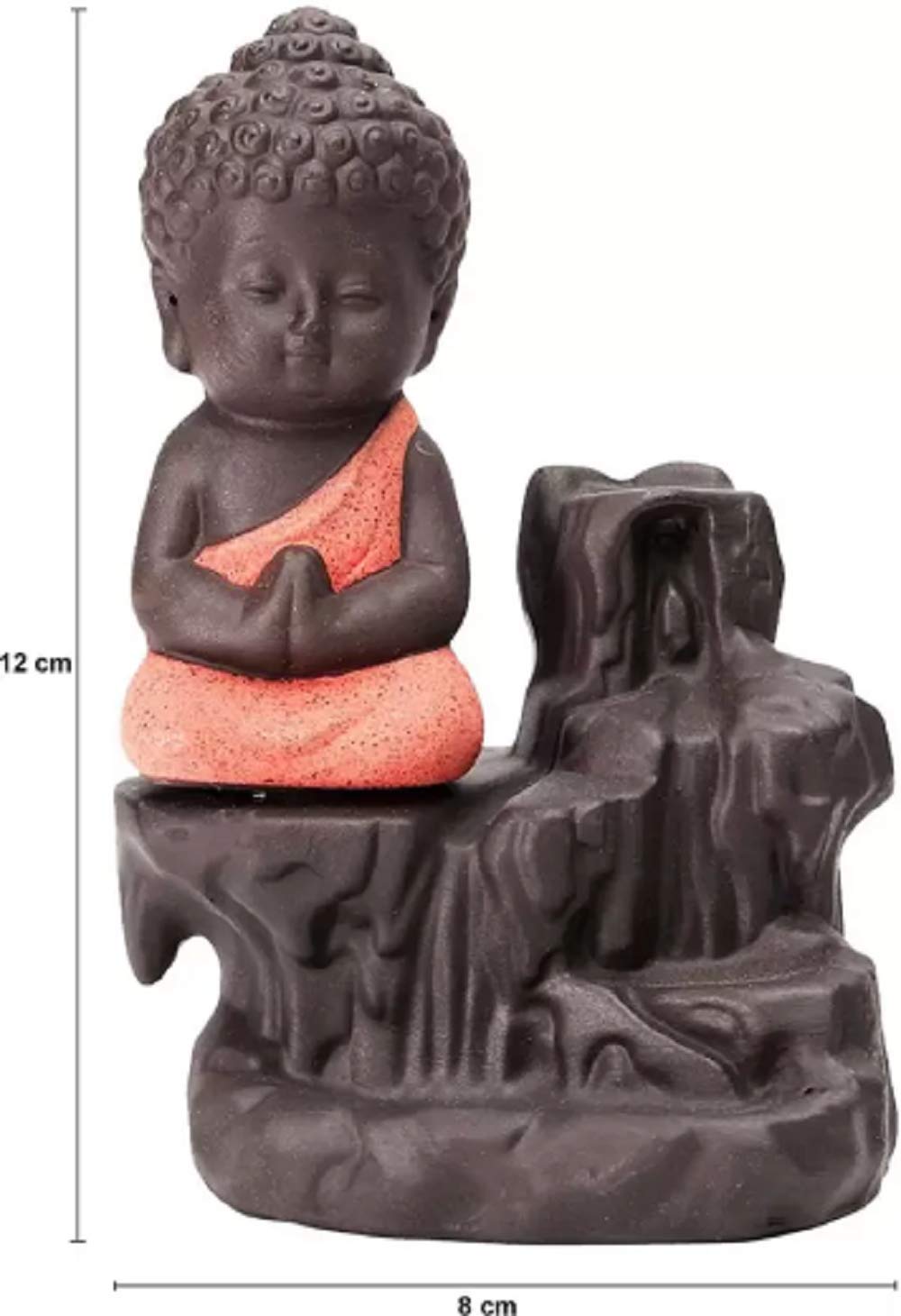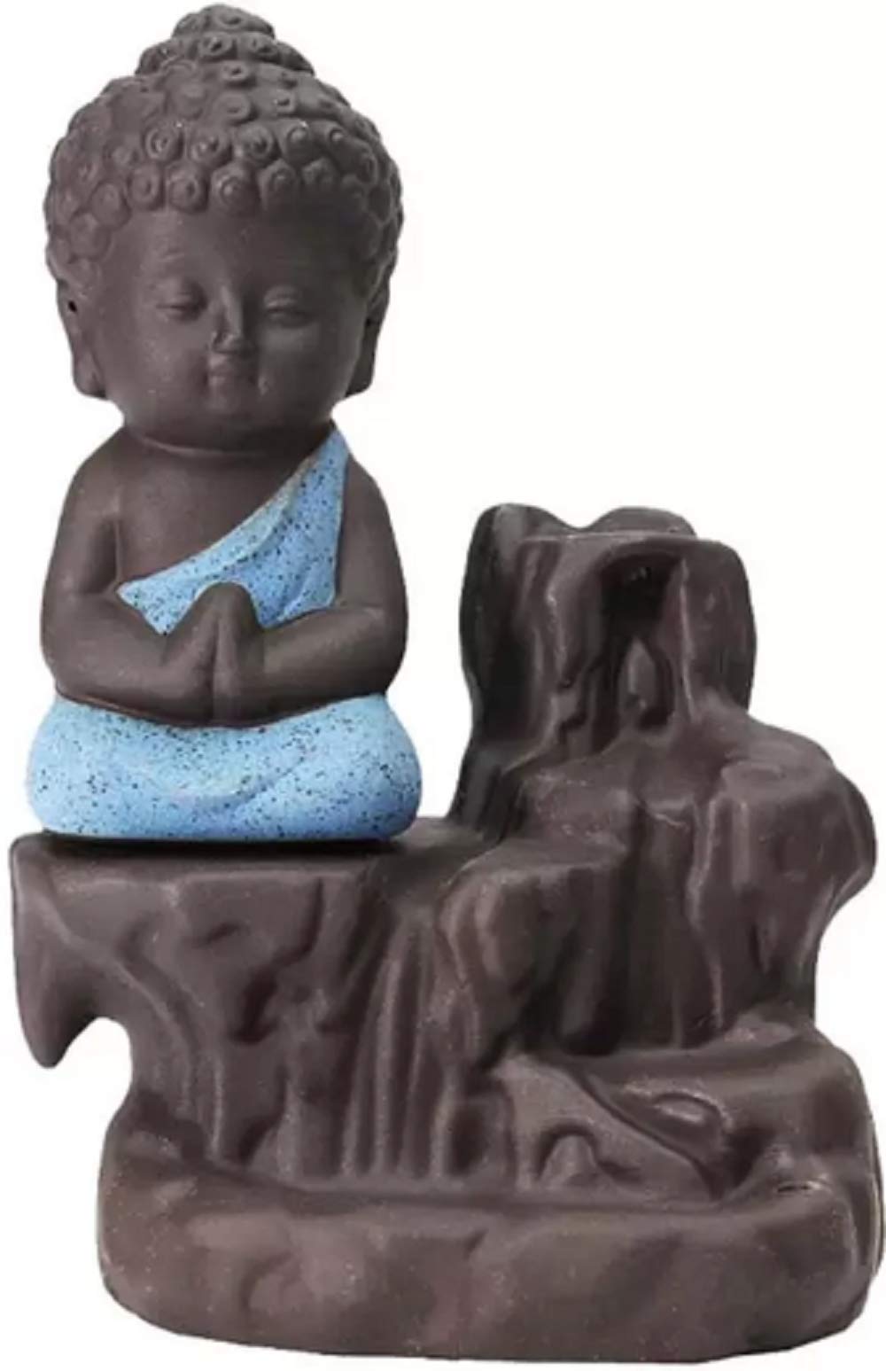 HomeHomeSpiritualIncense HolderKU - BUDDHIST FIGURINES Handcrafted Meditating Little Baby Monk Buddha Smoke Backflow Cone Incense Holder with 20 Incense Cones Decorative Showpiece - 12 cm (Polyresin Red Blue)