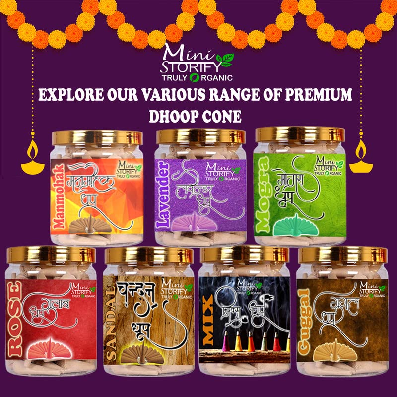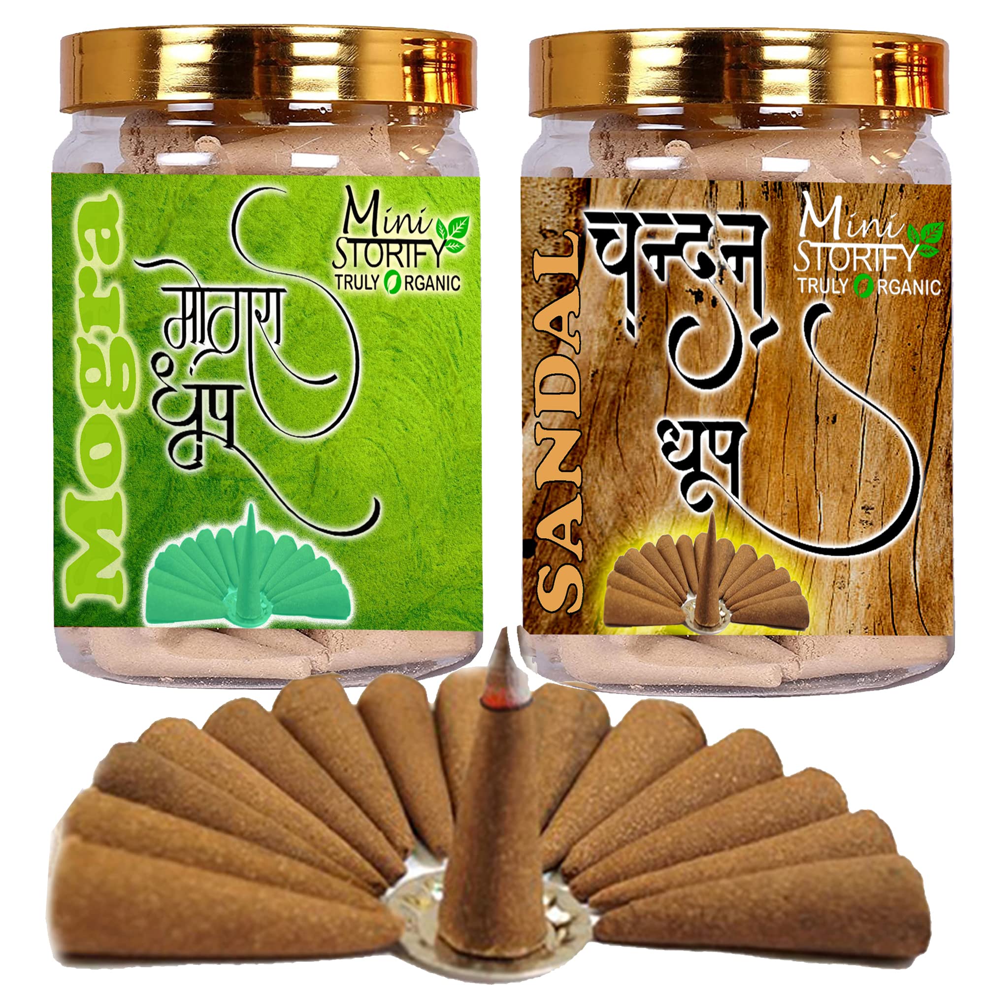 Mini Storify Truly Organic Incense Dhoop Cone for Pooja Home | Pack of 2 Mogra 70 pcs + Sandal 70 pcs