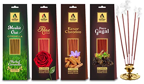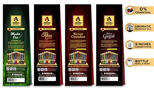 The Aroma Factory Rose Kesar Chandan Sandalwood & Gugal Incense Sticks Agarbatti {& } (Pack of 4 x 30 sticks) with an invigorating and refreshing fragrance.
