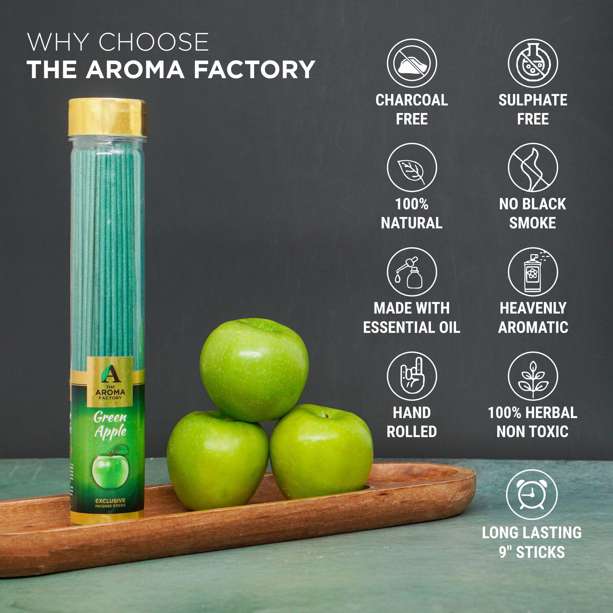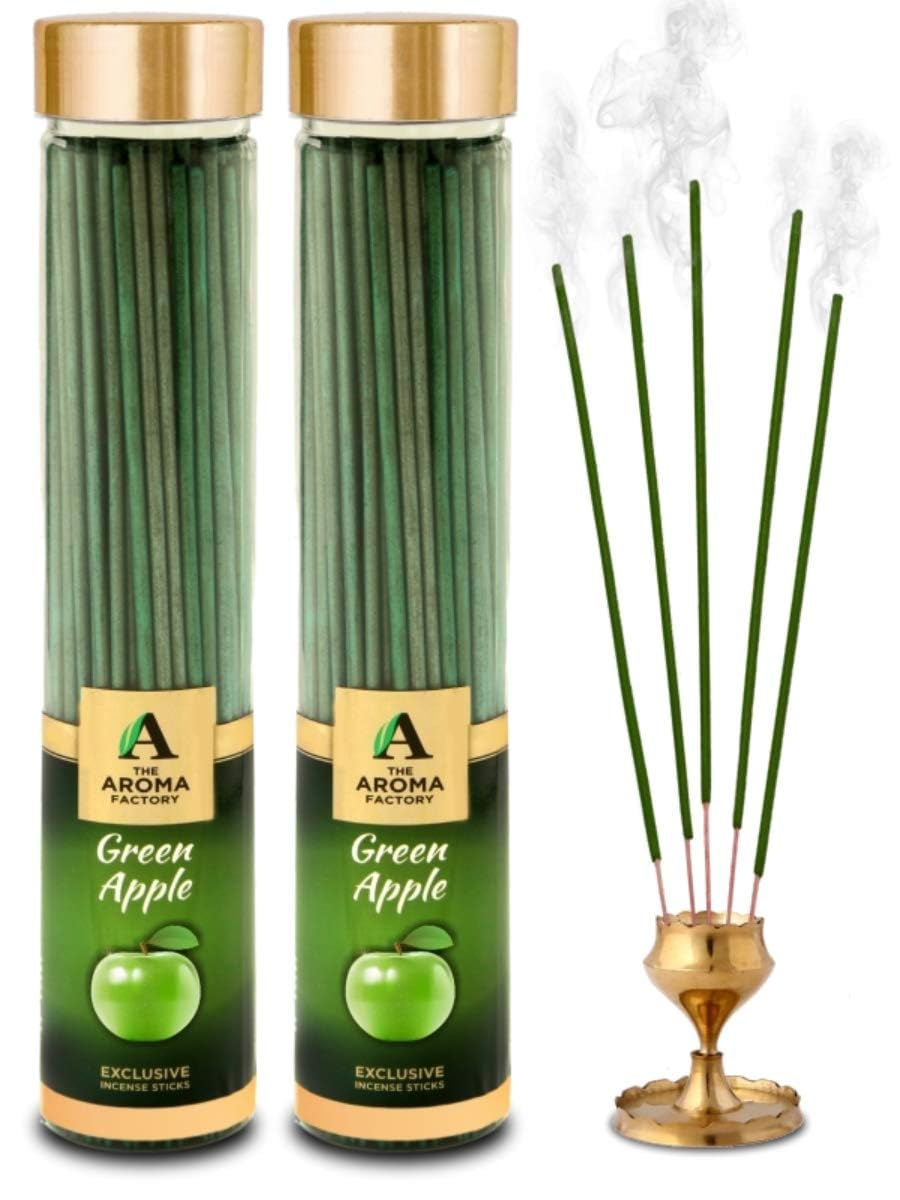 The Aroma Factory Green Apple Incense Sticks Agarbatti (Charcoal Free & 100% Herbal) Bottle Pack of 2 x 100