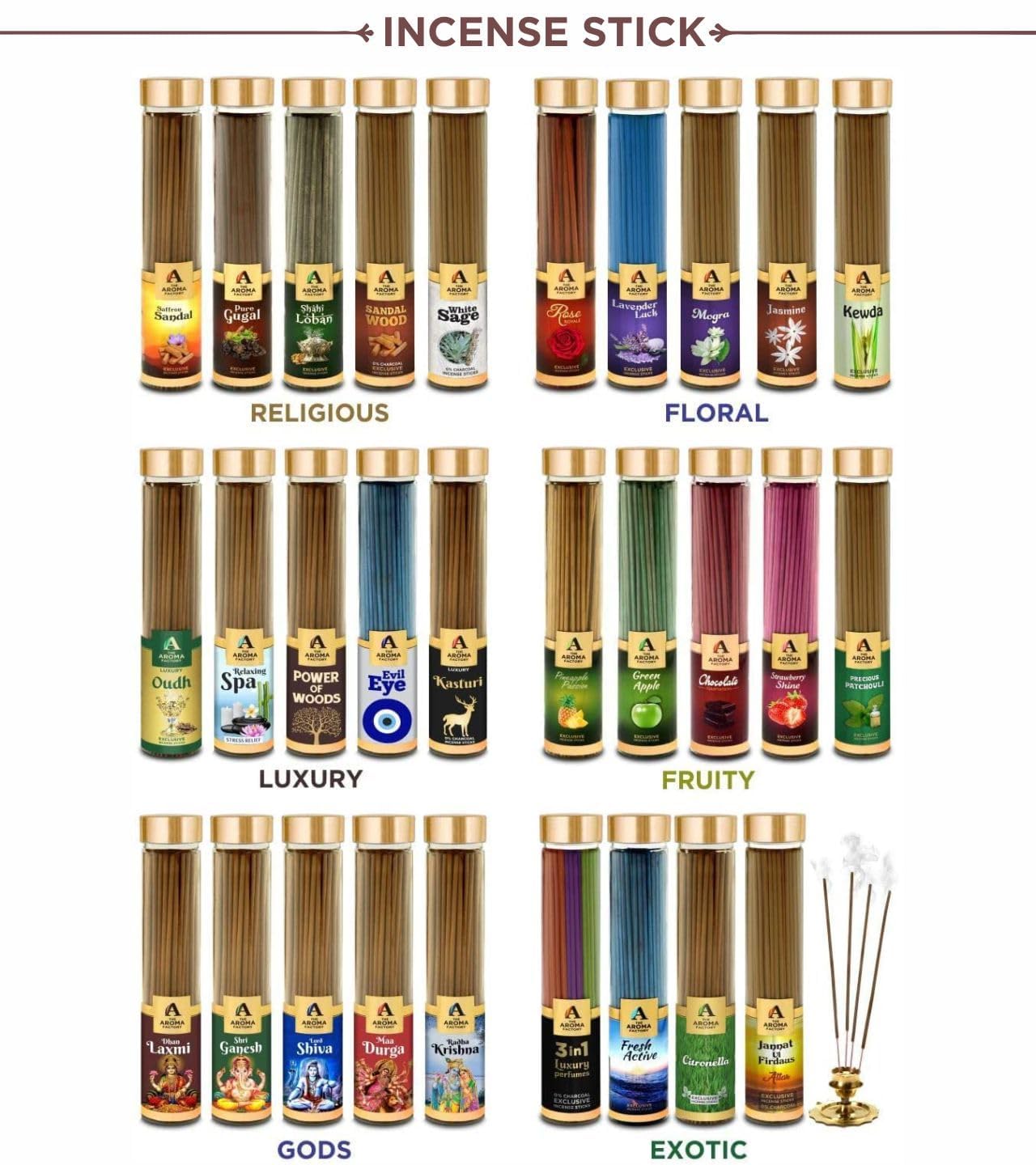 LONG-LASTING: The Aroma Factory incense Sticks contains 0% Charcoal a long-lasting fragrance to relax your senses