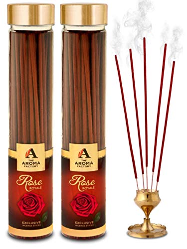 The Aroma Factory Rose Royale Incense Sticks Agarbatti (Charcoal Free & 100% Herbal) Bottle Pack of 2 x 100