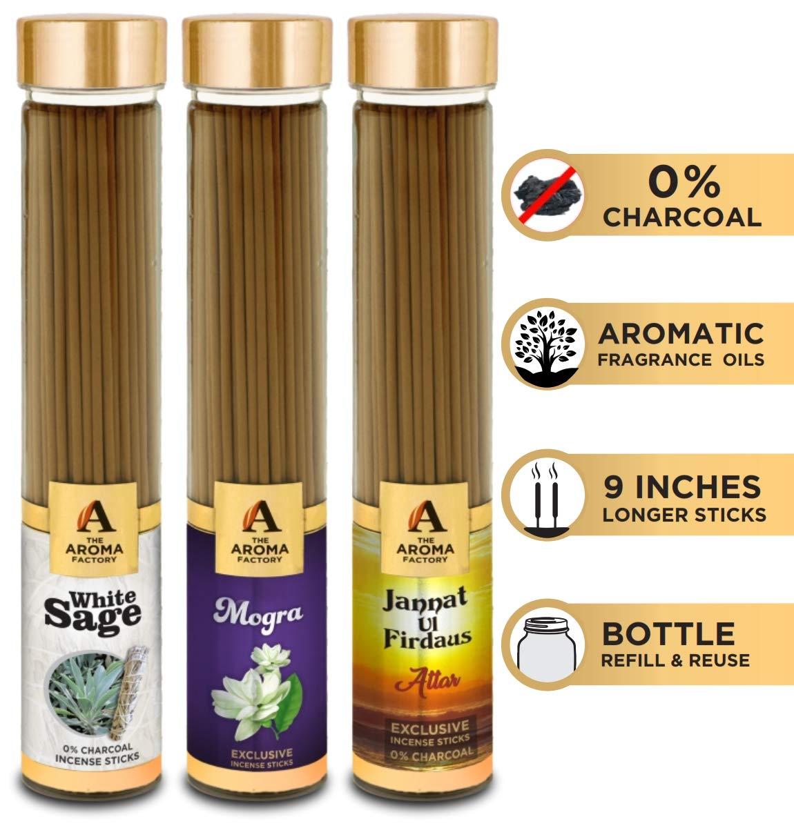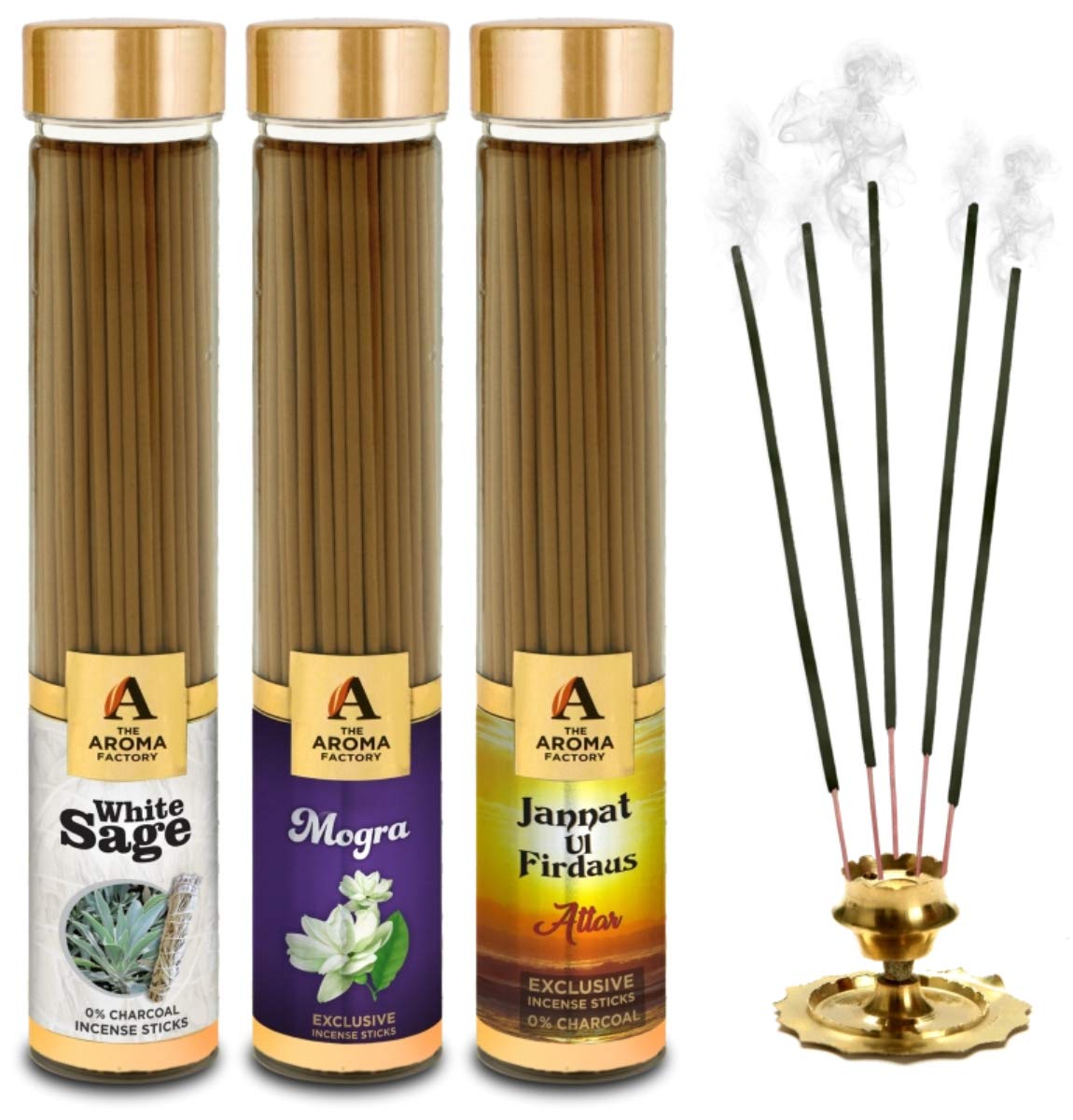 The Aroma Factory White SageMogra& Attar Jannat Agarbatti for PoojaLuxury Incense Sticks100% Herbal Fragrance Agarbathi (Bottle Pack of 3x100g)