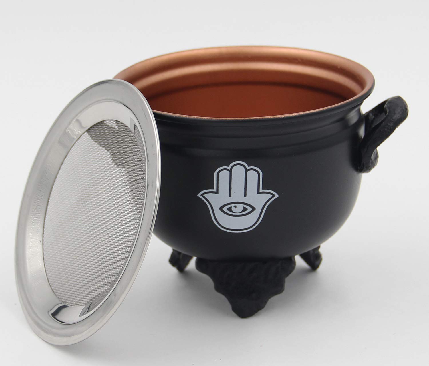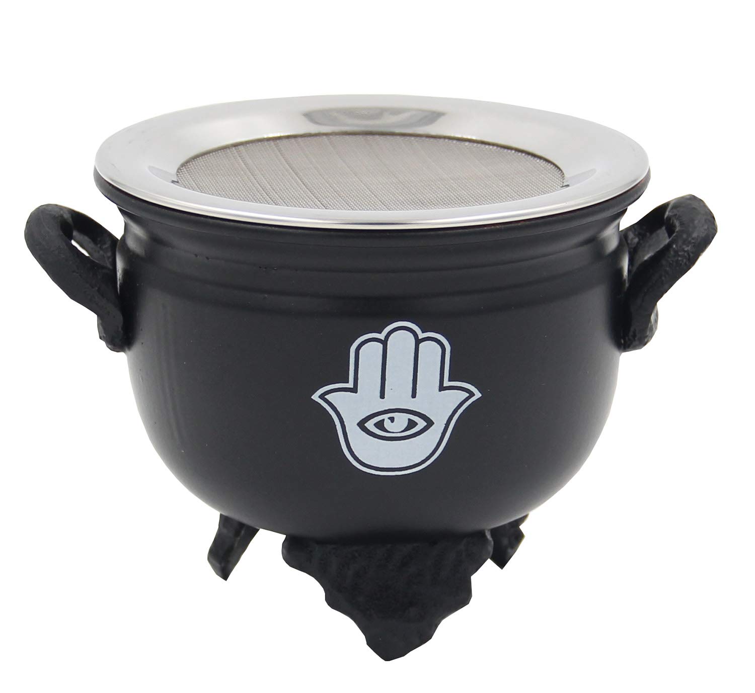 TIBETAN RITUAL CURTAIN Large Metal Charcoal Screen Incense Burner (Fatima Hand)