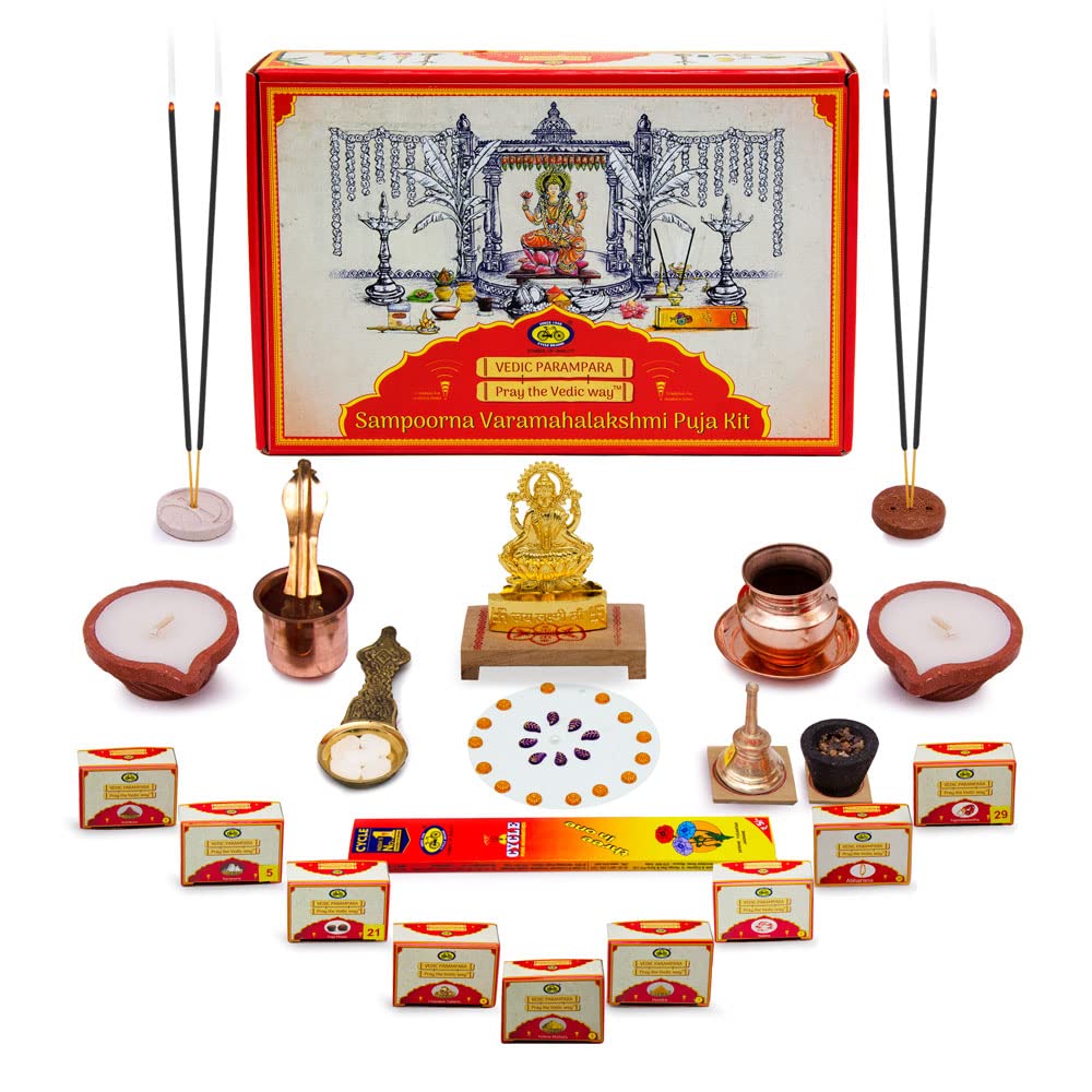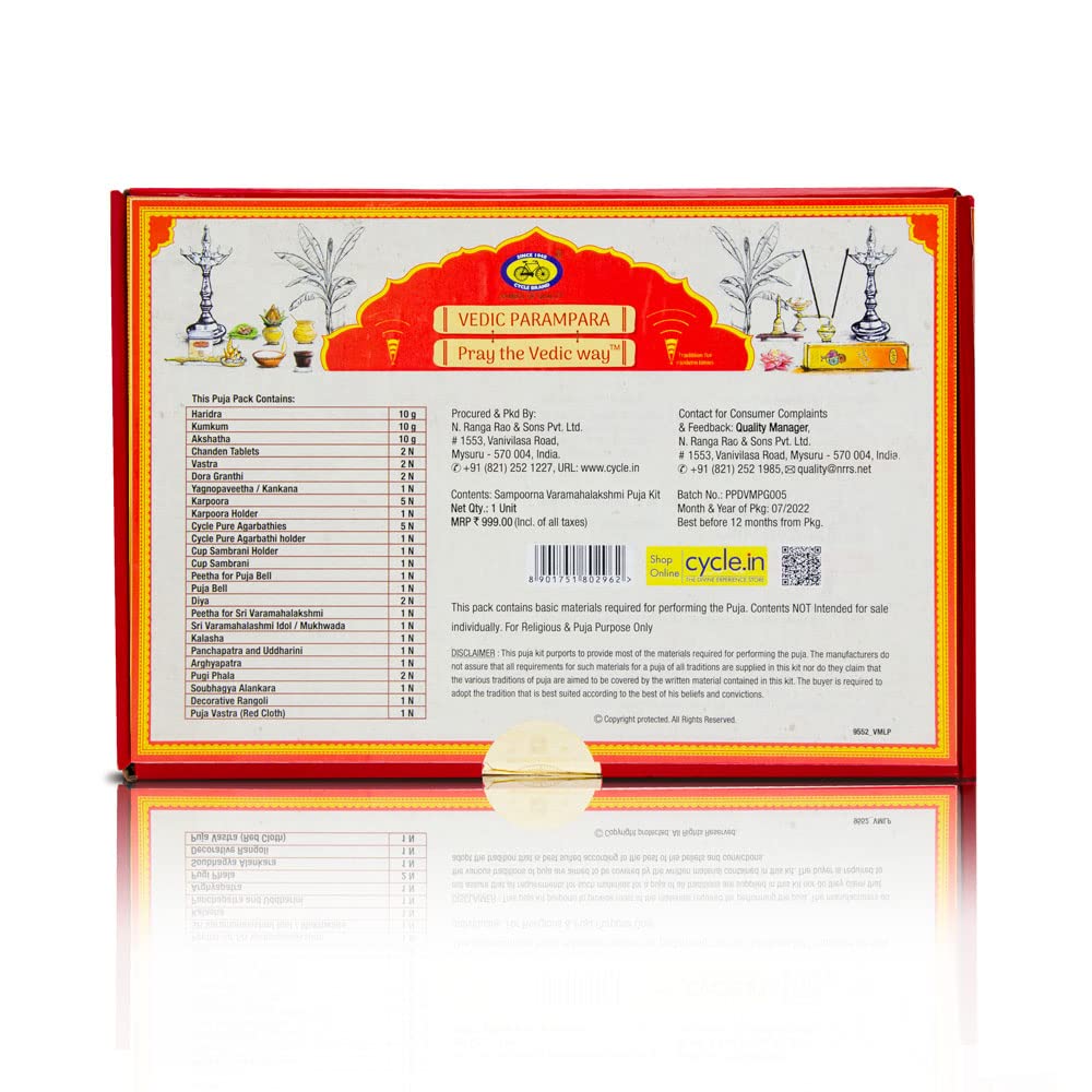 Cycle Vedic Parampara Sampoorna Varamahalakshmi Puja Kit with Complete Puja Samagri Instructions (Pooja Vidhi) Lakshmi Idol and Varamahalakshmi Mukhavada