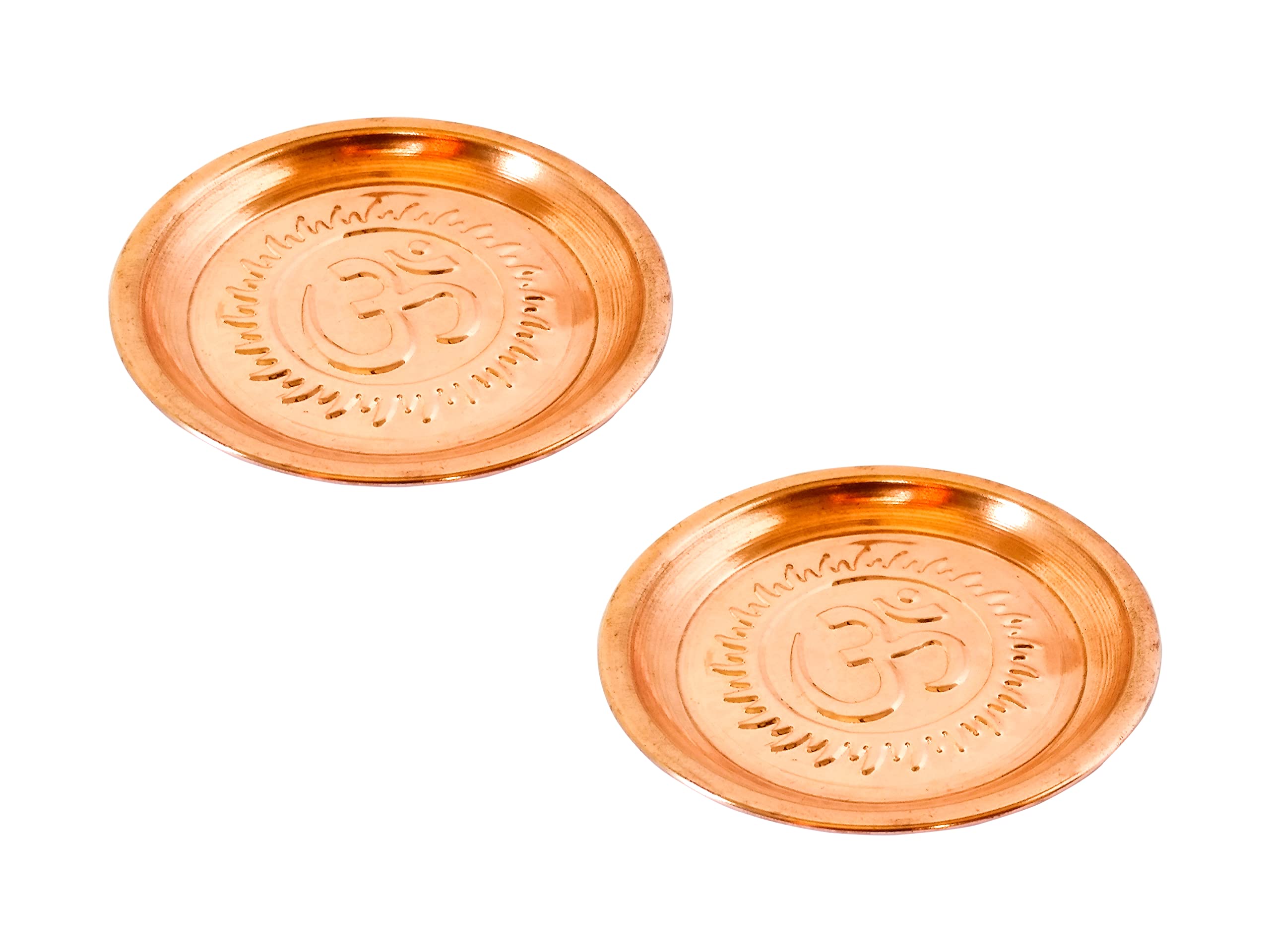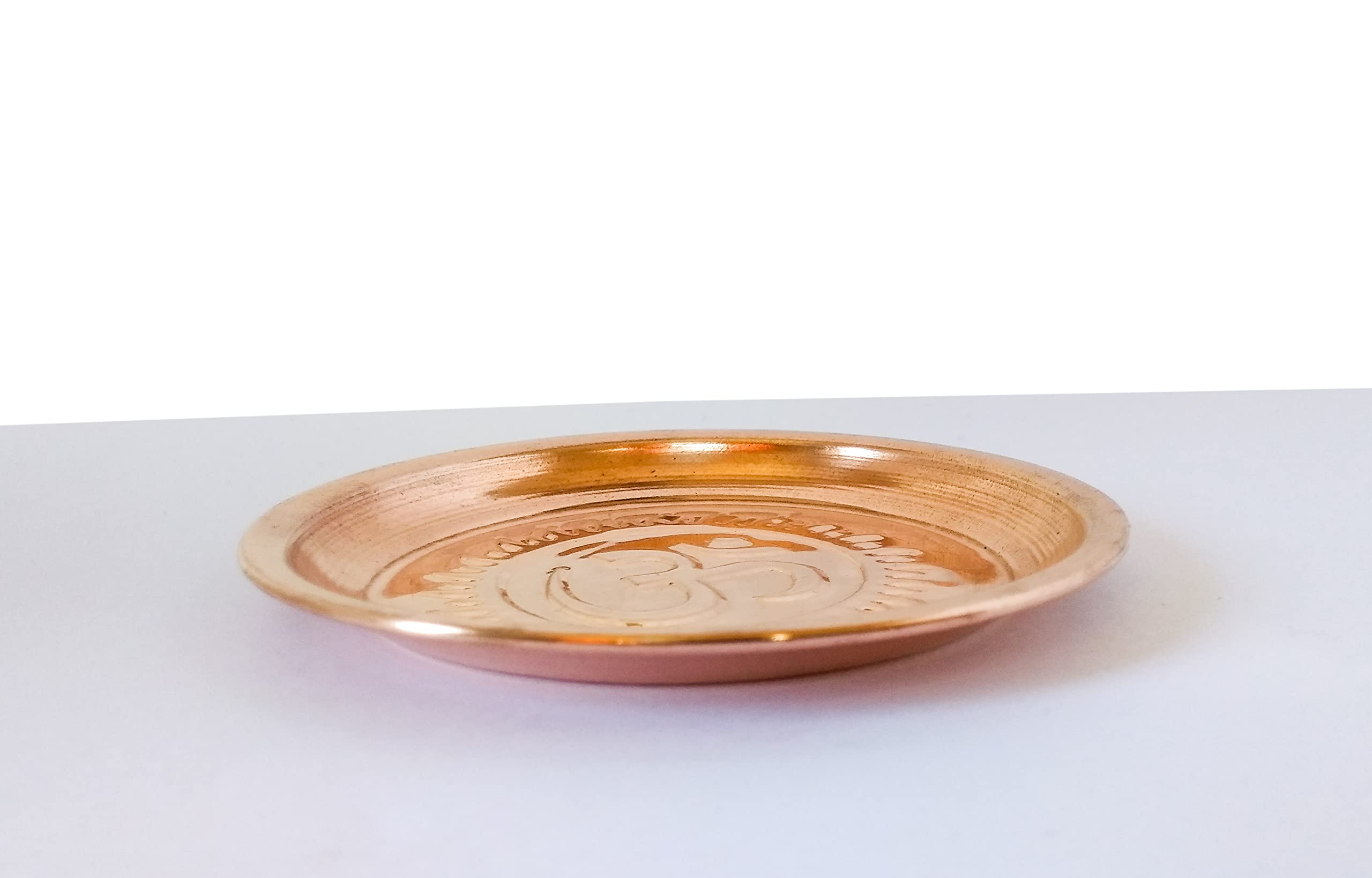 CLAP24 Small Copper/Tamba Pooja Plate Bhog/Prasad Prasadam Prashad Thali for Pooja Diya Plate Puja Item Pack of 2 (5 inch)
