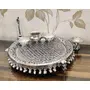German Silver Heavy Pooa Thali (Diameter 11") With Full Ghungru Layer And Elephant Trunks Stand Set of 6 Items