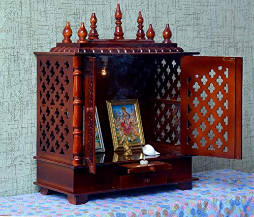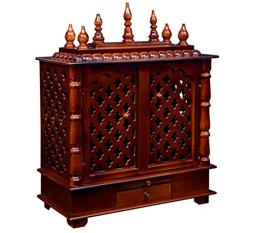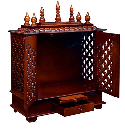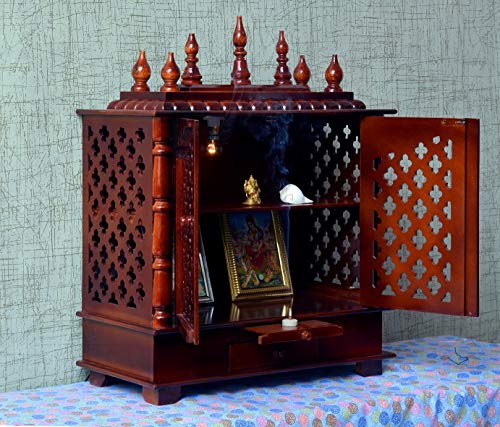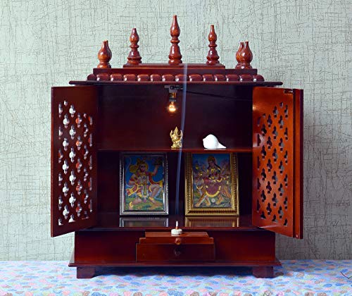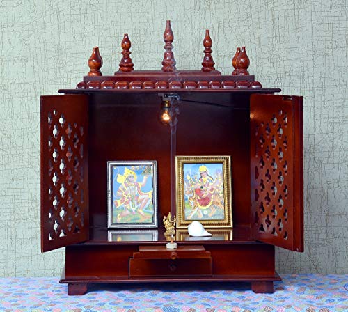 Craftlia Wooden Temple with Door and Light (Inside Temple: 18 X 12 X 16 Inch Outside Temple: 24 X 12 X 30 Inch Brown)