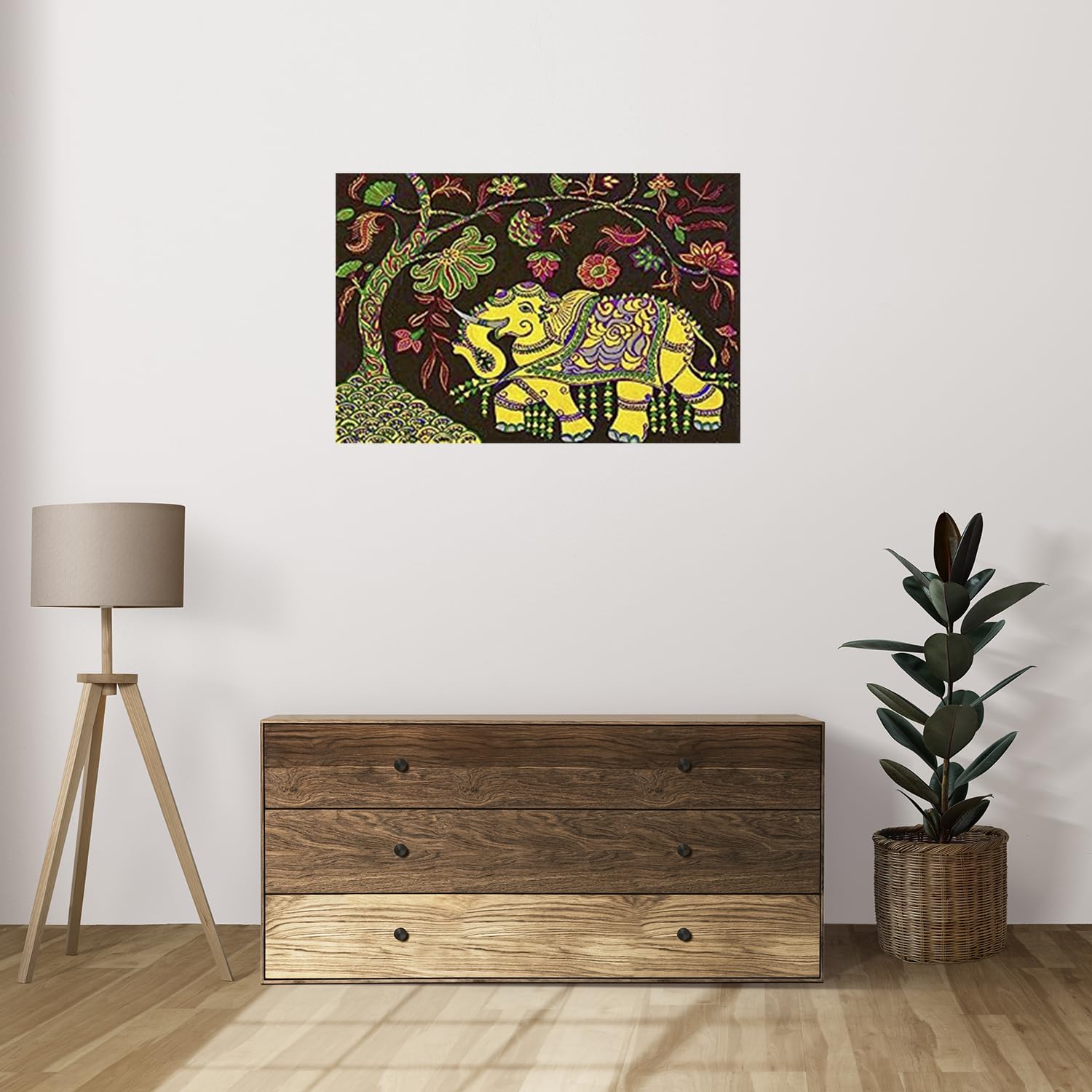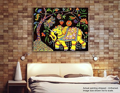 MADHUBANI PAINTINGS Canvas Print Unframed Madhubani The Colorful Elephant Painting Size 24 inch x 16 inch Multicolour