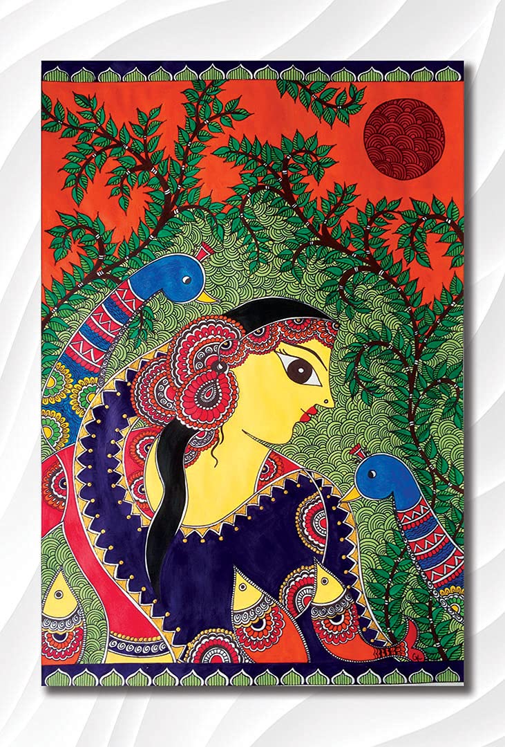 HomeHomeWall AccentsPaintingsMADHUBANI PAINTINGS Laminated Poster - Girl with Peacock - Traditional Painting - Madhubani Art - Laminated Paper (Laminated Paper Size 24X36 Inches MultiColor)