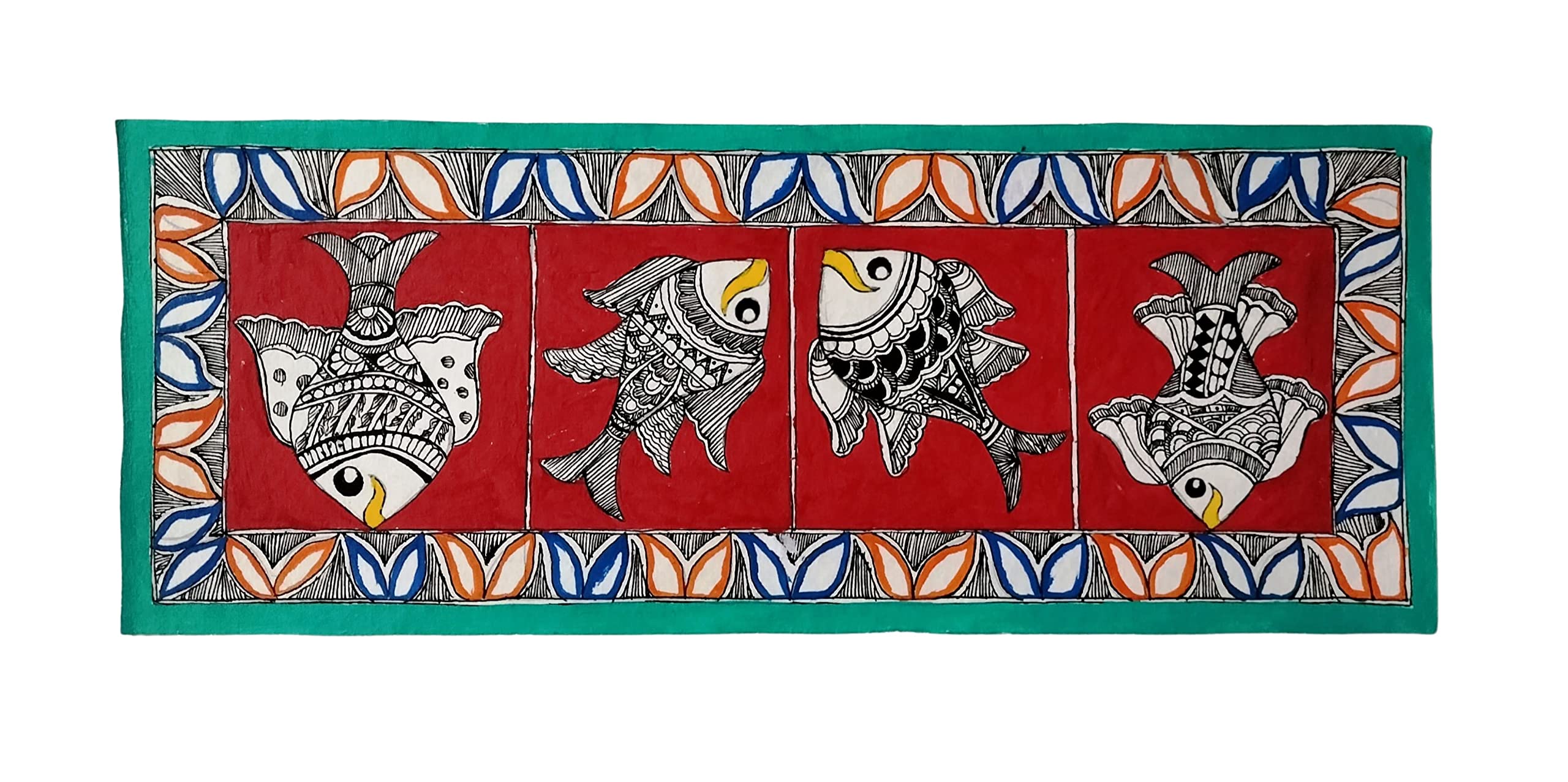 MADHUBANI PAINTINGS MITHILA PAINTING/MADHUBANI PAINTING OF FISH- FULLY HANDMADE- (16X6.5 INCH)-UNFRAMED