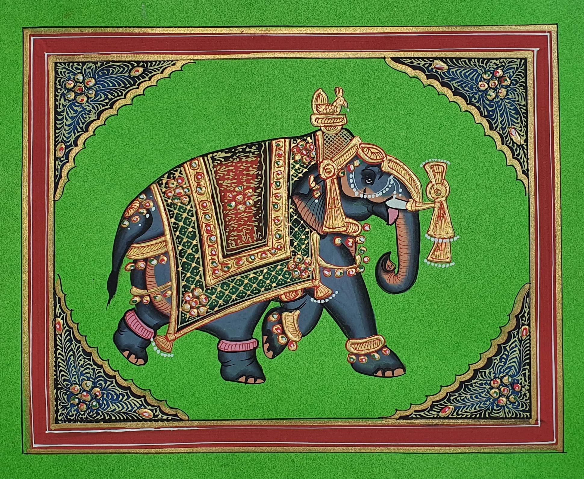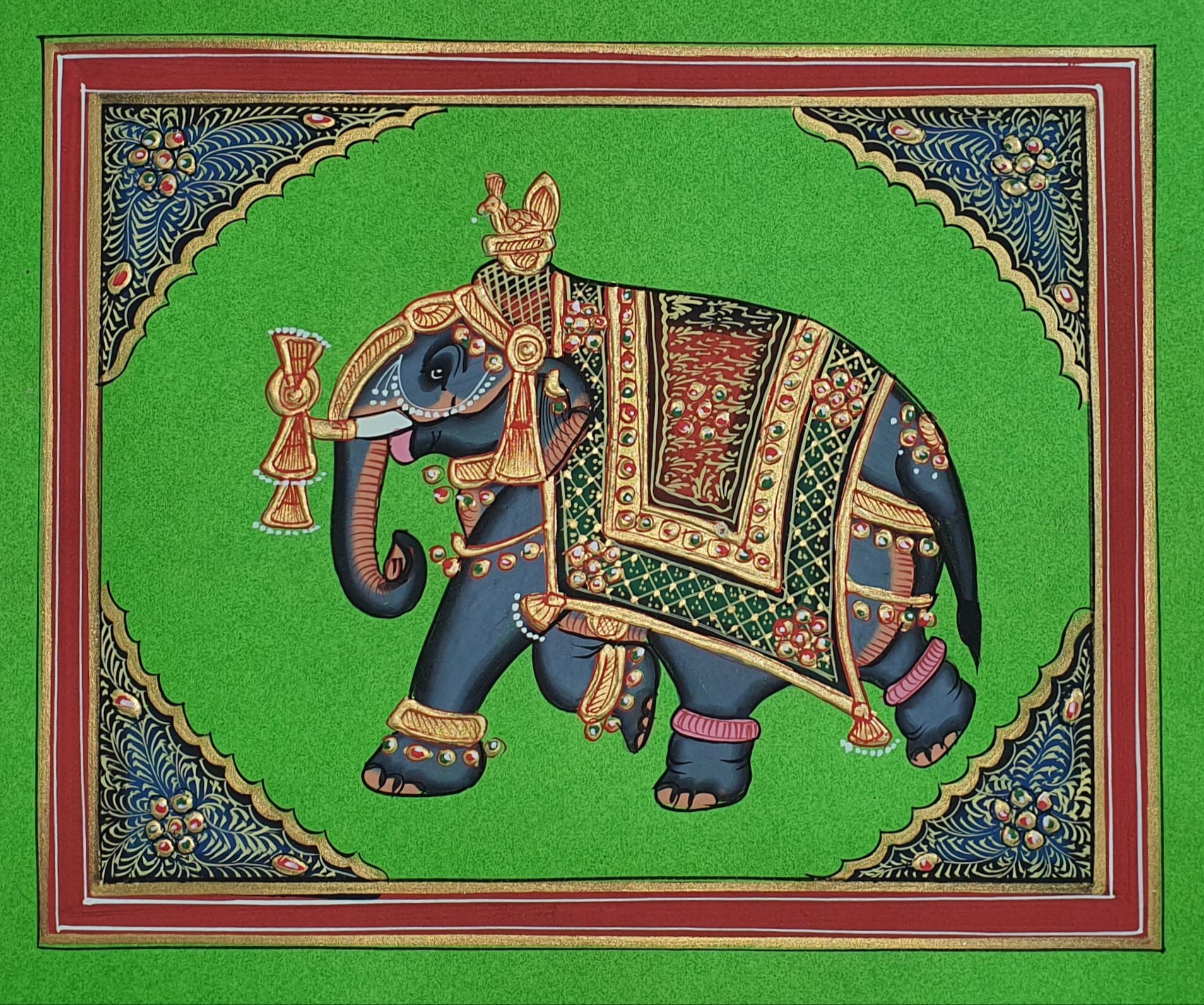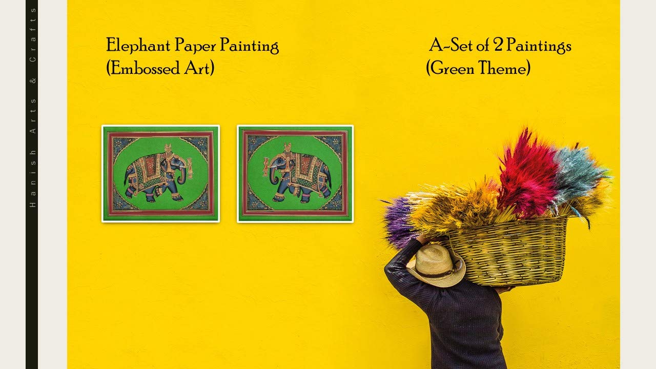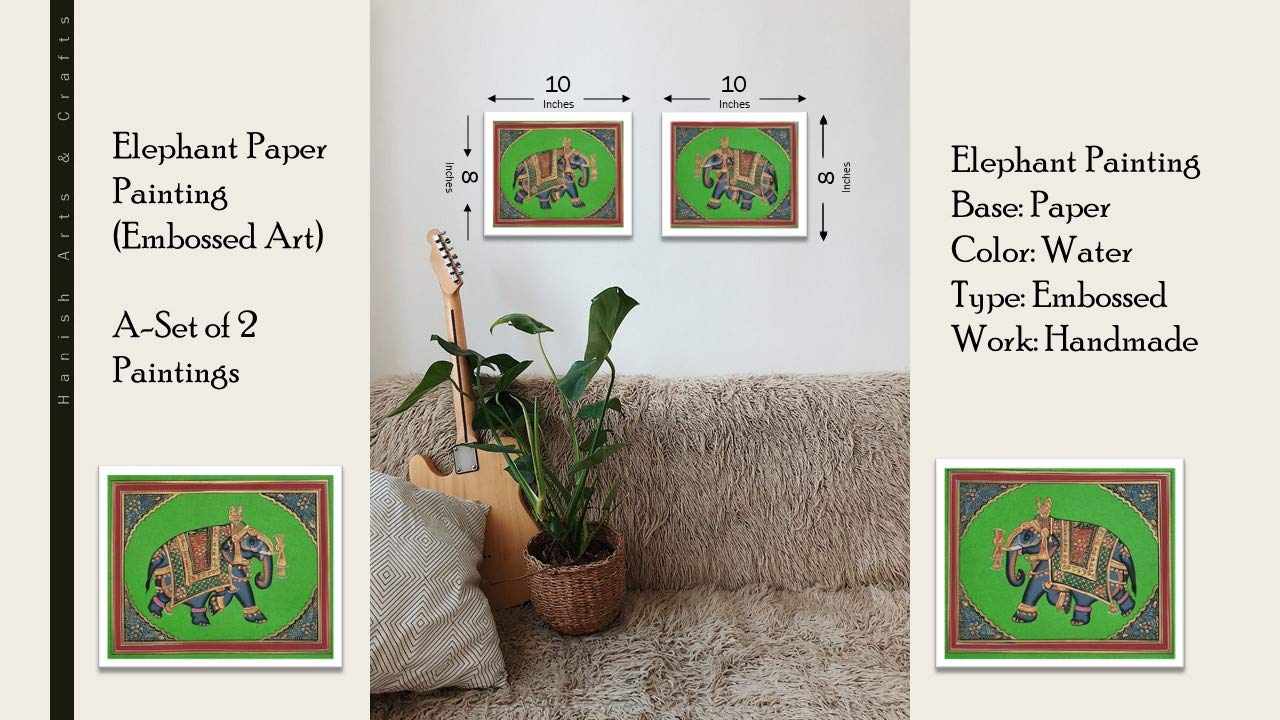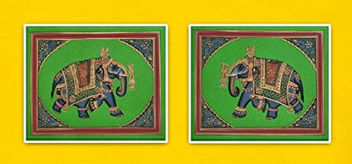 PICHWAI- PAINTED TEMPLE HANGING - Embossed Elephant Art (A Set of 2 pcs) (Handmade Painting) E004