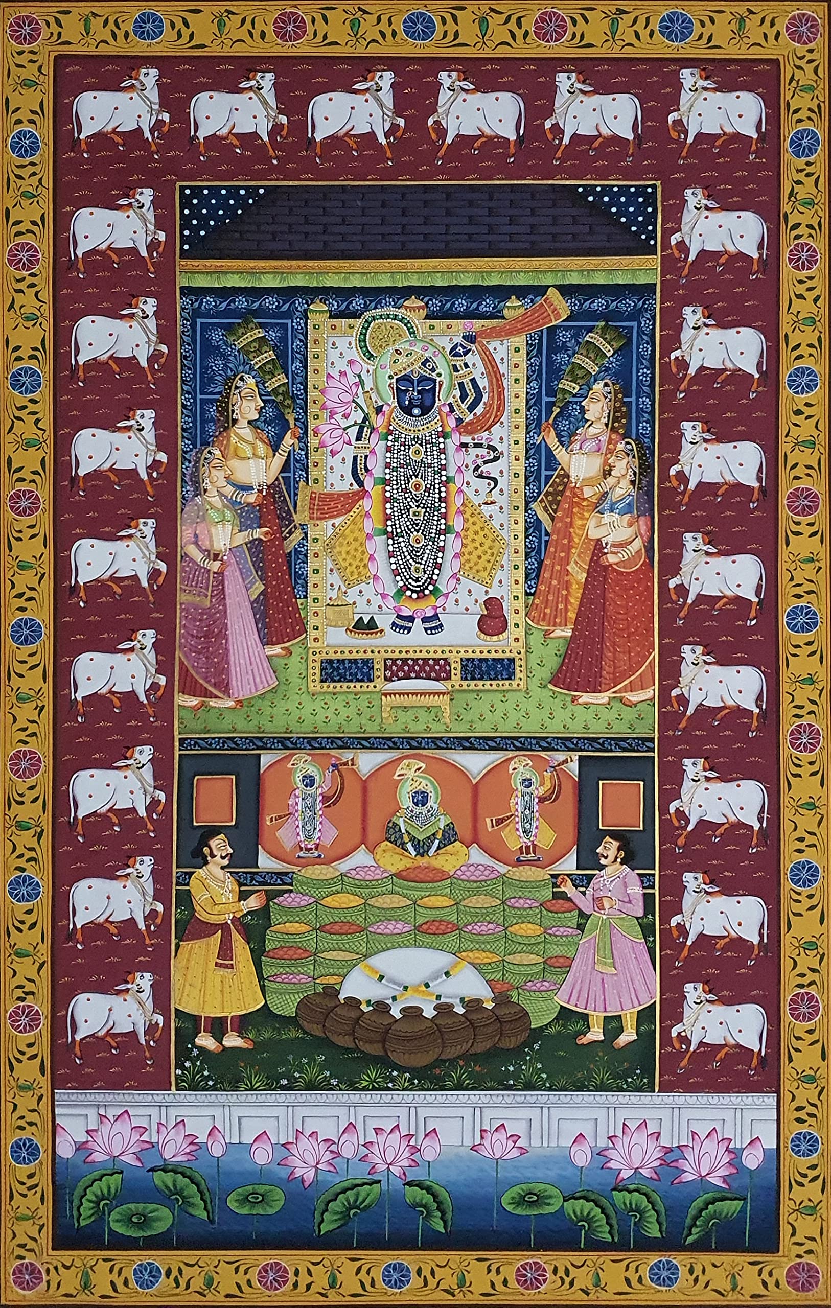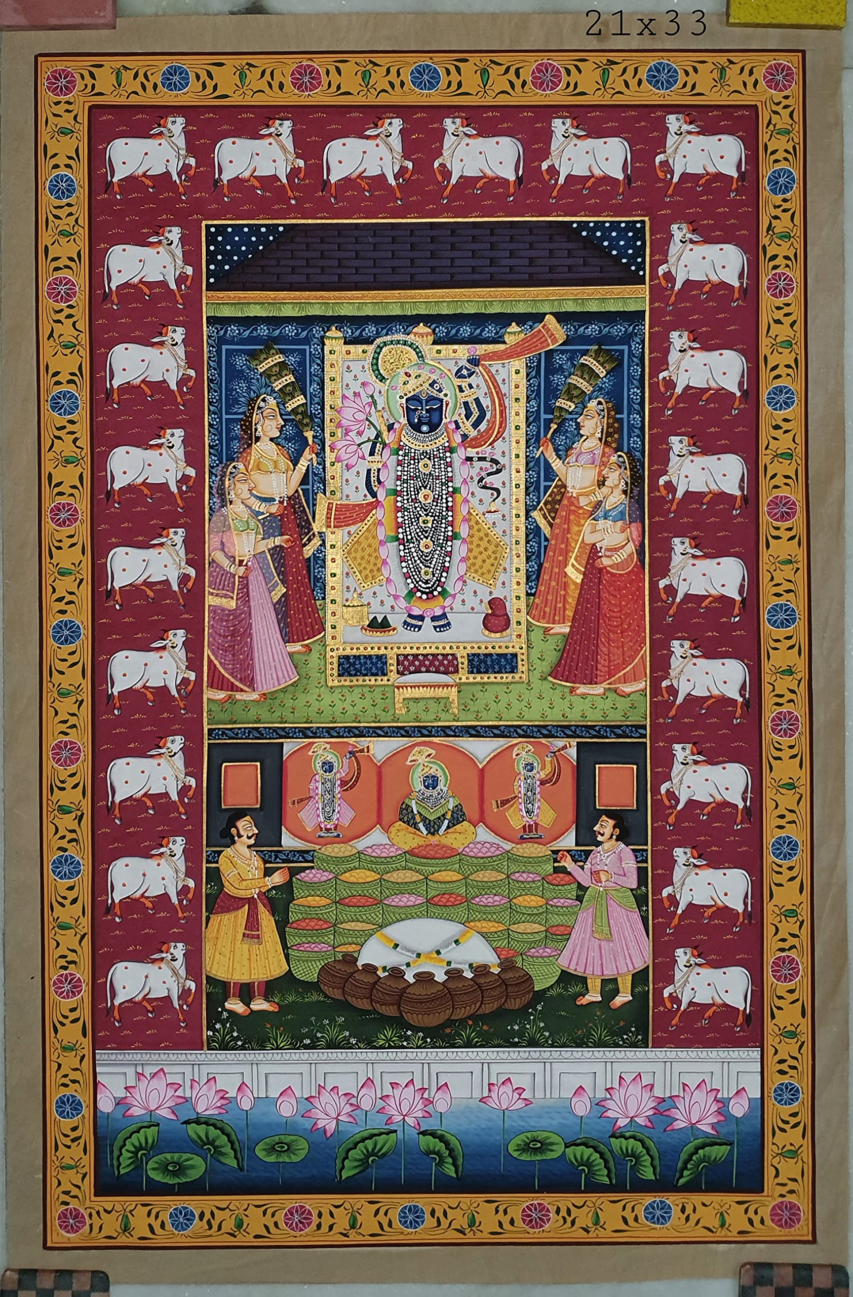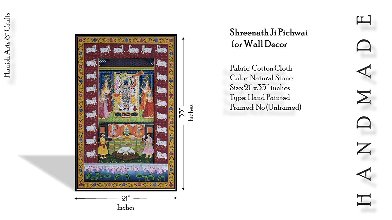 PICHWAI- PAINTED TEMPLE HANGING - Shreenath Ji Pichwai Painting - Hand Painted on Cloth (21x33 inches) Unframed (sh003-p7)