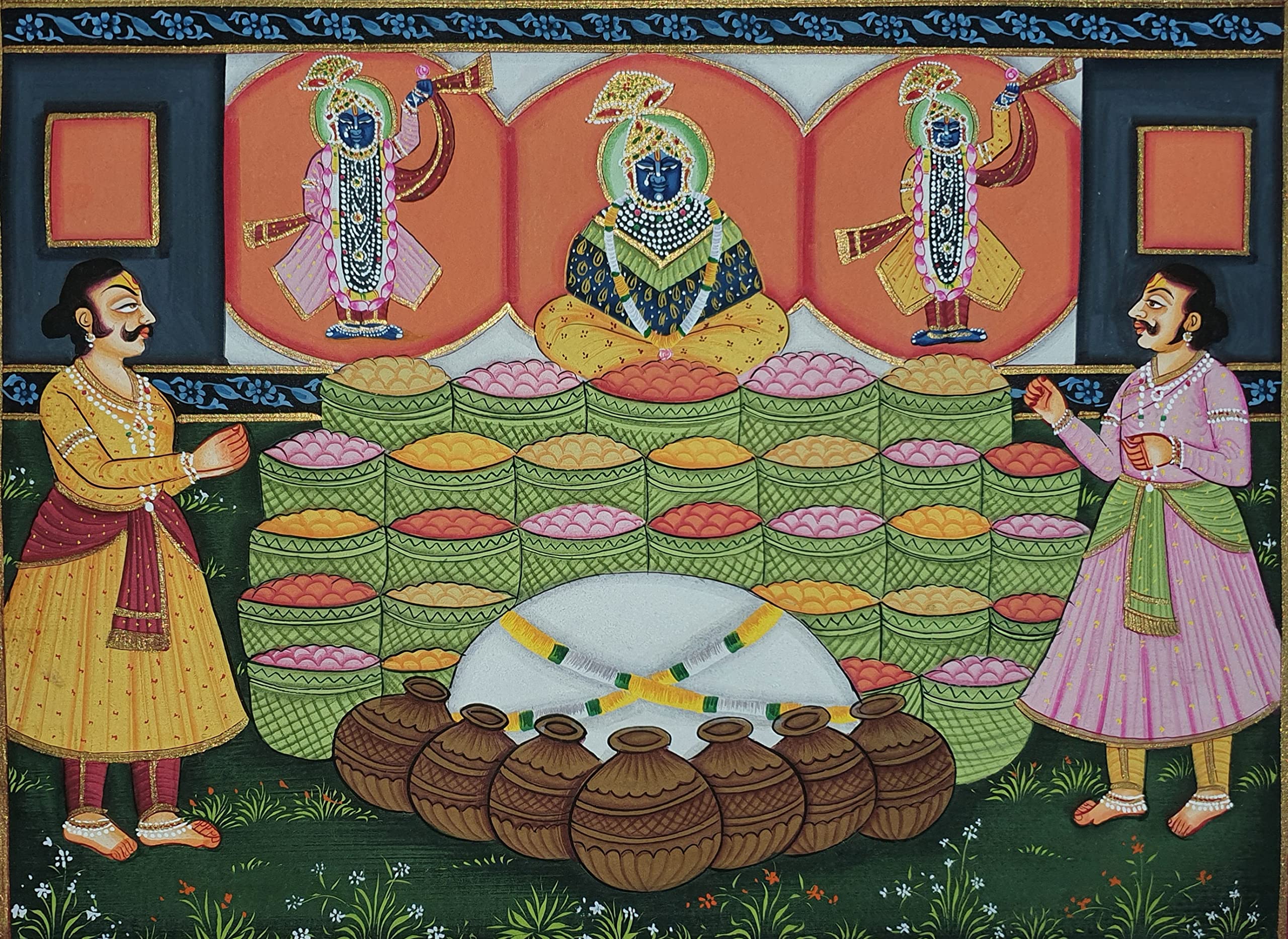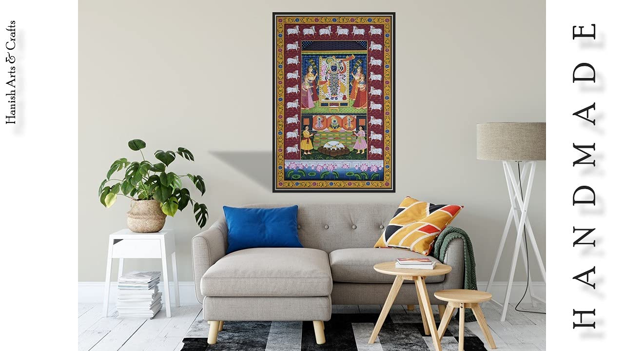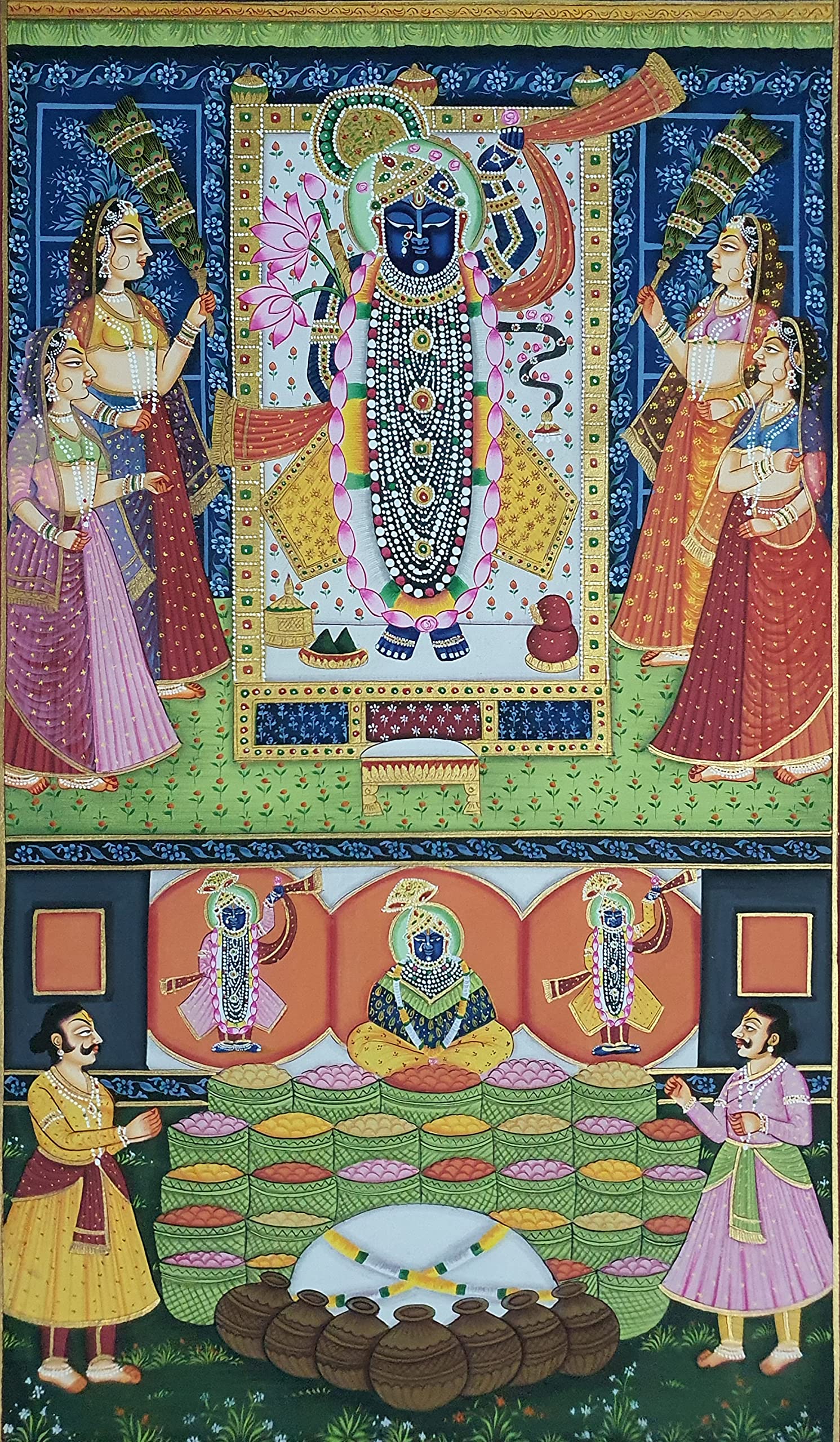 PICHWAI- PAINTED TEMPLE HANGING - Shreenath Ji Pichwai Painting - Hand Painted on Cloth (21x33 inches) Unframed (sh003-p7)
