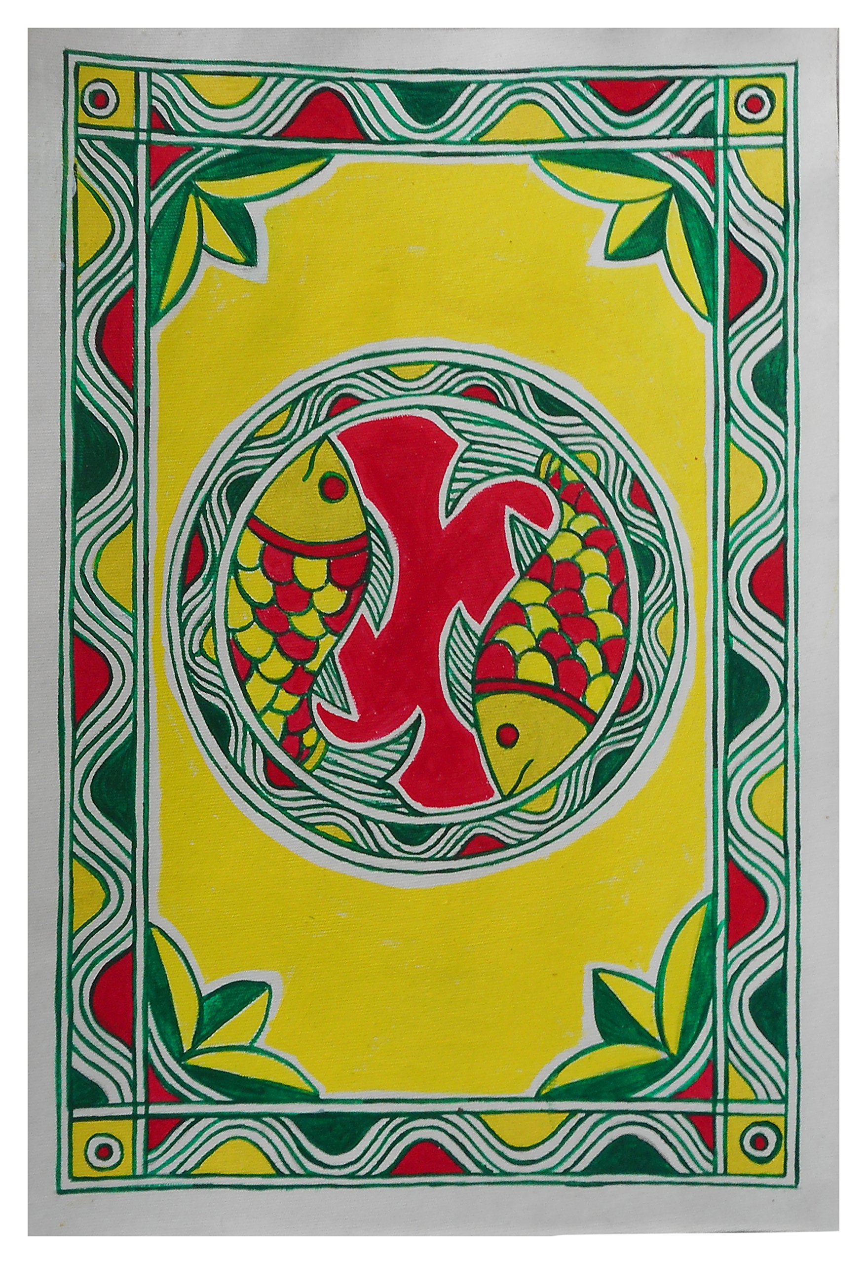 SIKKI CRAFT Paper Manjusha Fish Painting (76 cm x 0.1 cm x 38 cm SC 3)
