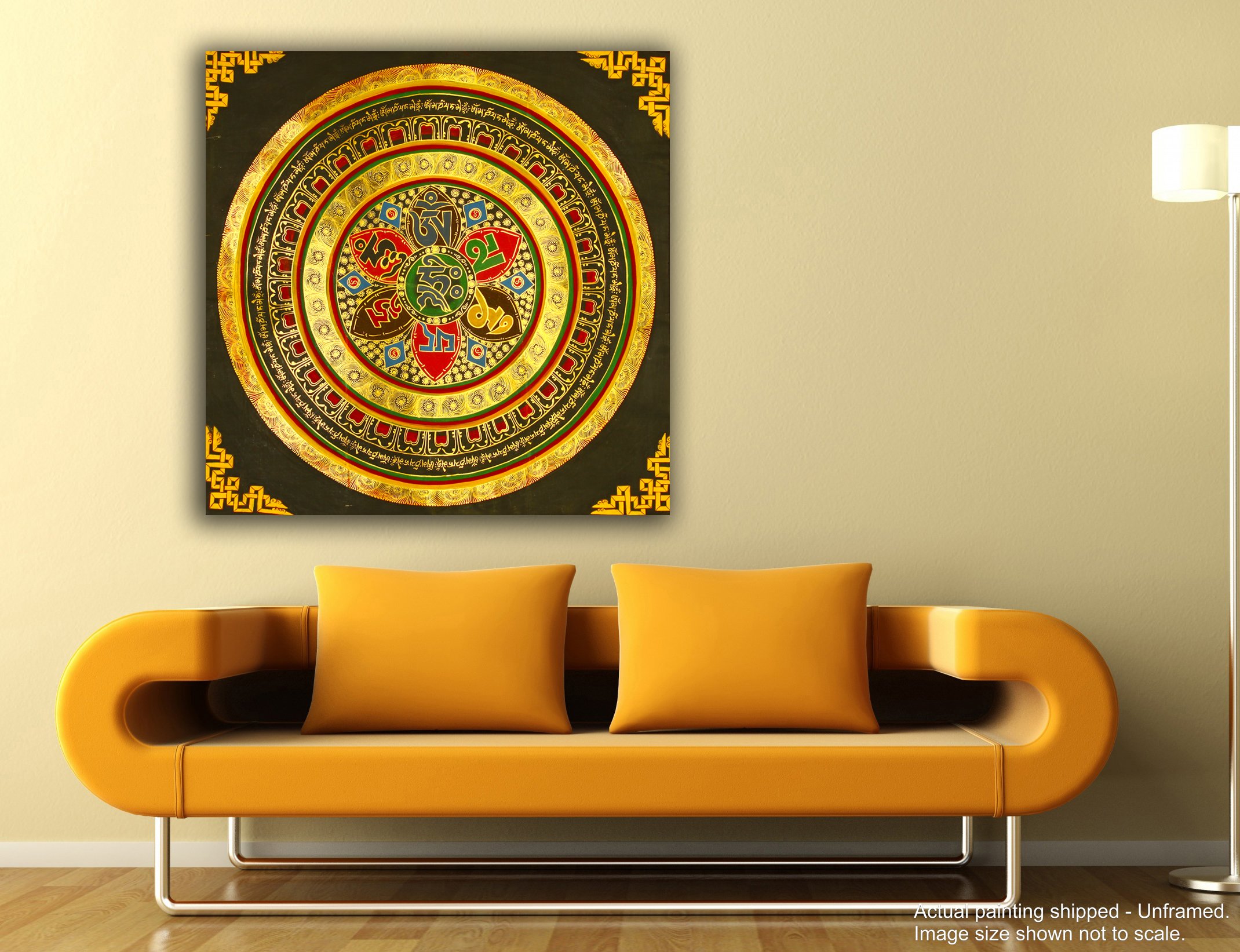 HomeHomeWall AccentsPaintingsTHANGKA PAINTING Mandala Art Canvas Painting | Golden Mandala | Traditional Art Unframed painting for Home dcor|size - 24X24 Inches.p7