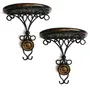 WOOD CRAFTS OF RAJASTHAN Wooden & Wrought Iron Fancy Wall Shelf (Brown & Black Size - 8 x 4 x 9.5 Inches) Pack of 2