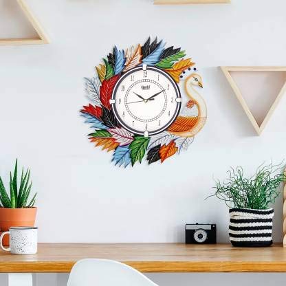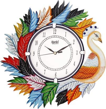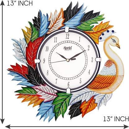 TOWN CRAFTS Ajanta Peacock Wood Wall Clock (Multicolour 14x14 Inches)