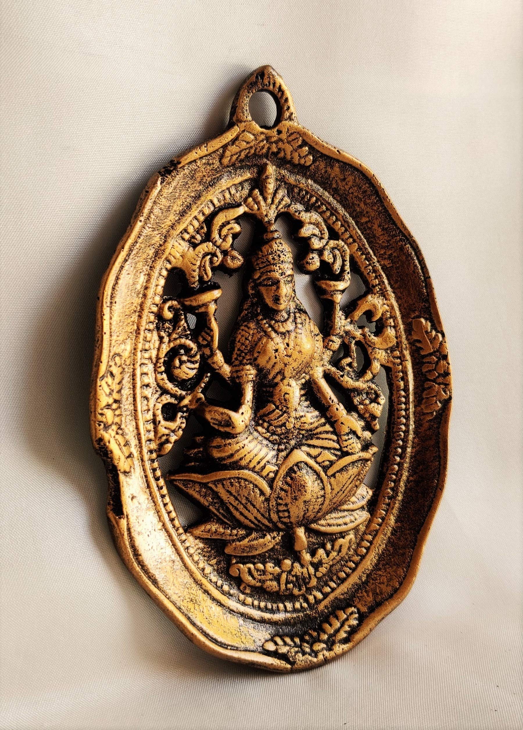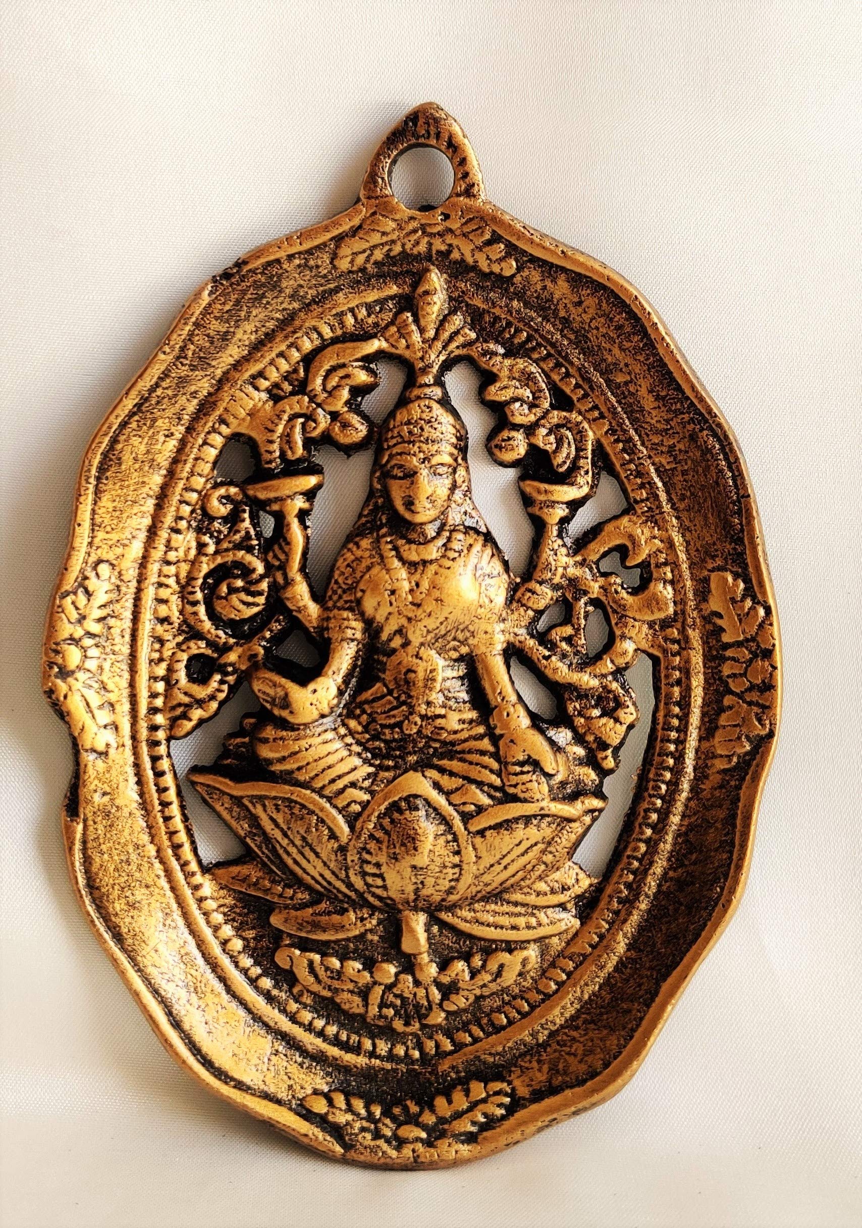 HomeHomeWall AccentsHangingBRASS CRAFTS Metal Lord Laxmi Frame Laxmi Ji Wall Hanging for Entrance Door Living Room showpiece (LxBxH - 12CMx2CMx18CM) Weight 170 Grams; Made in India