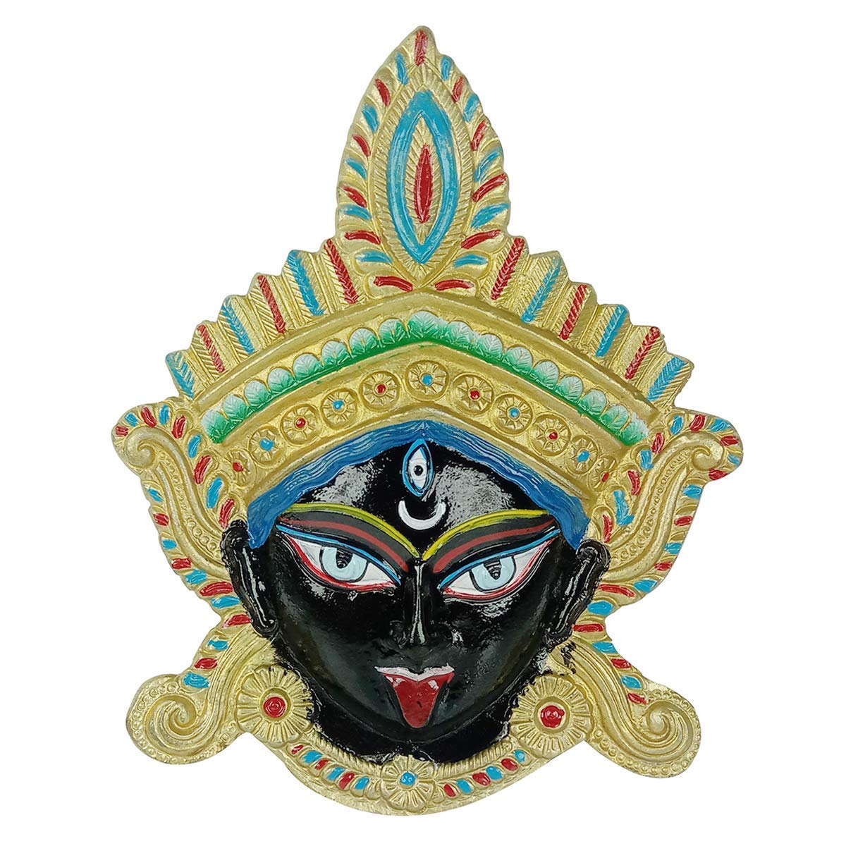 DHOKRA CRAFT Metal Wall Hanging Maa Kali Murti Najar Battu Decorative Showpiece - 17.5 cm (Metal Multicolor) (Standard 5)
