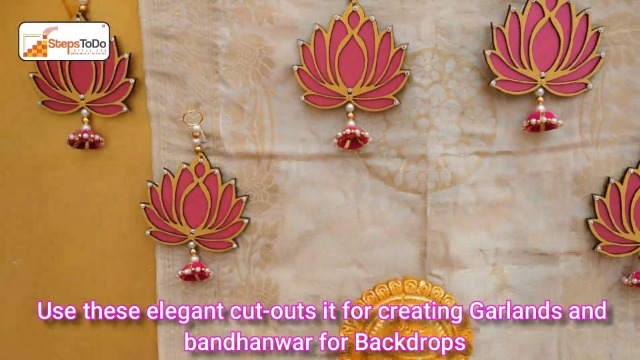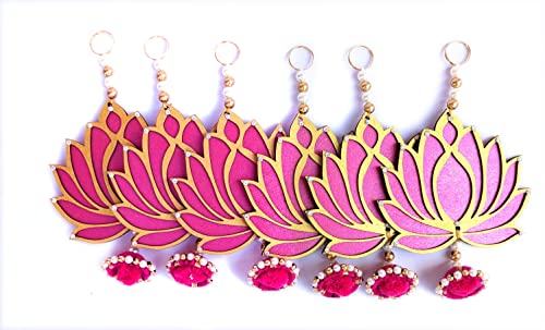 StepsToDo (with device) Hanging Wooden Lotus Cut-Out Handicraft. Set of 6. Rose Pink. Festive DIY Craft Material. Completely Wooden. Decoration for Any Festival, Diwali, Pooja, Wedding Gift.(6)