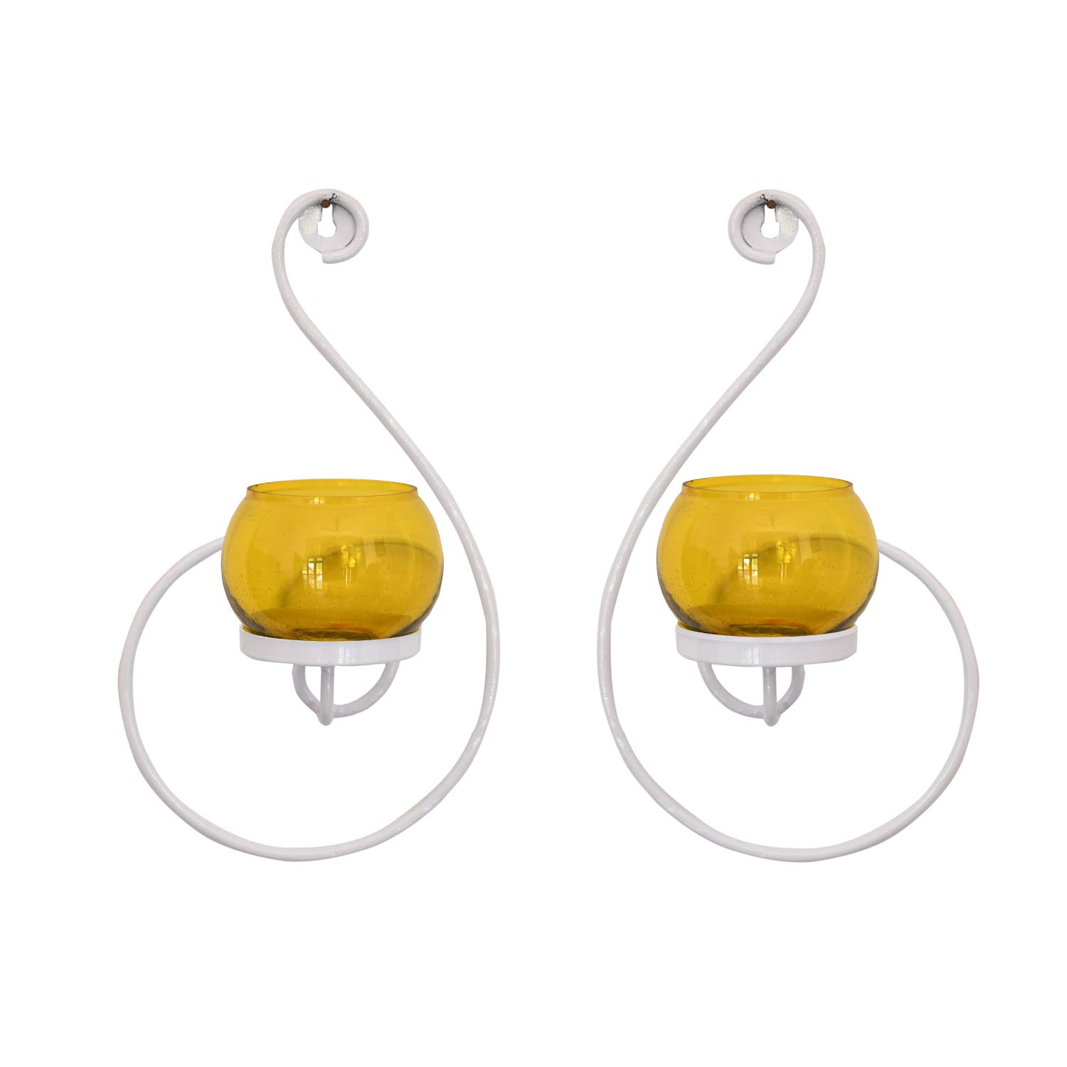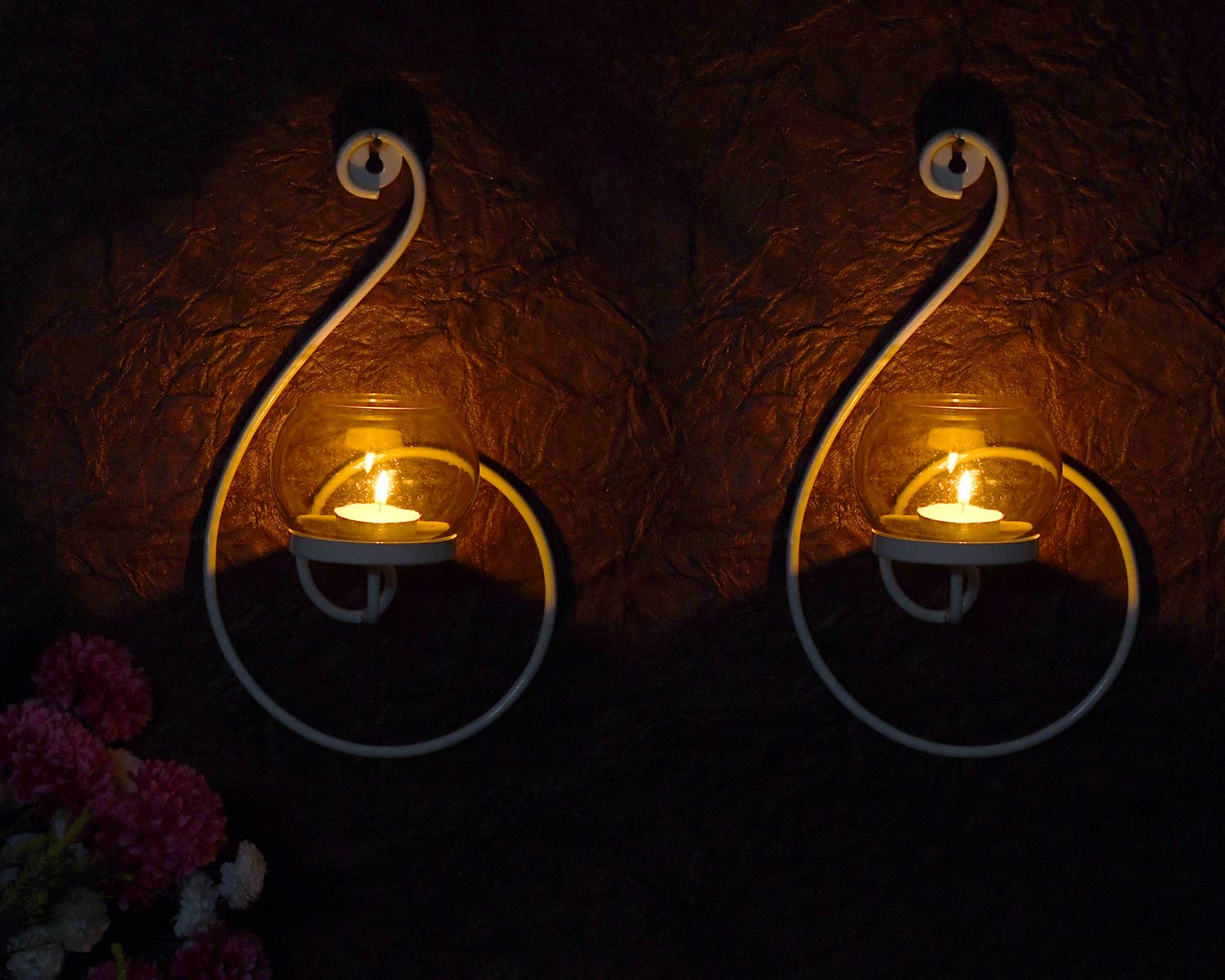HomeHomeWall AccentsHangingRAJASTHANI METAL HANDICRAFTSWall Hanging Tea Light Candle Holder Metal Wall Sconce with Glass Cups and Tea Light Candles for Christmas Lights for Home Decoration- (Set of 2- Yellow)
