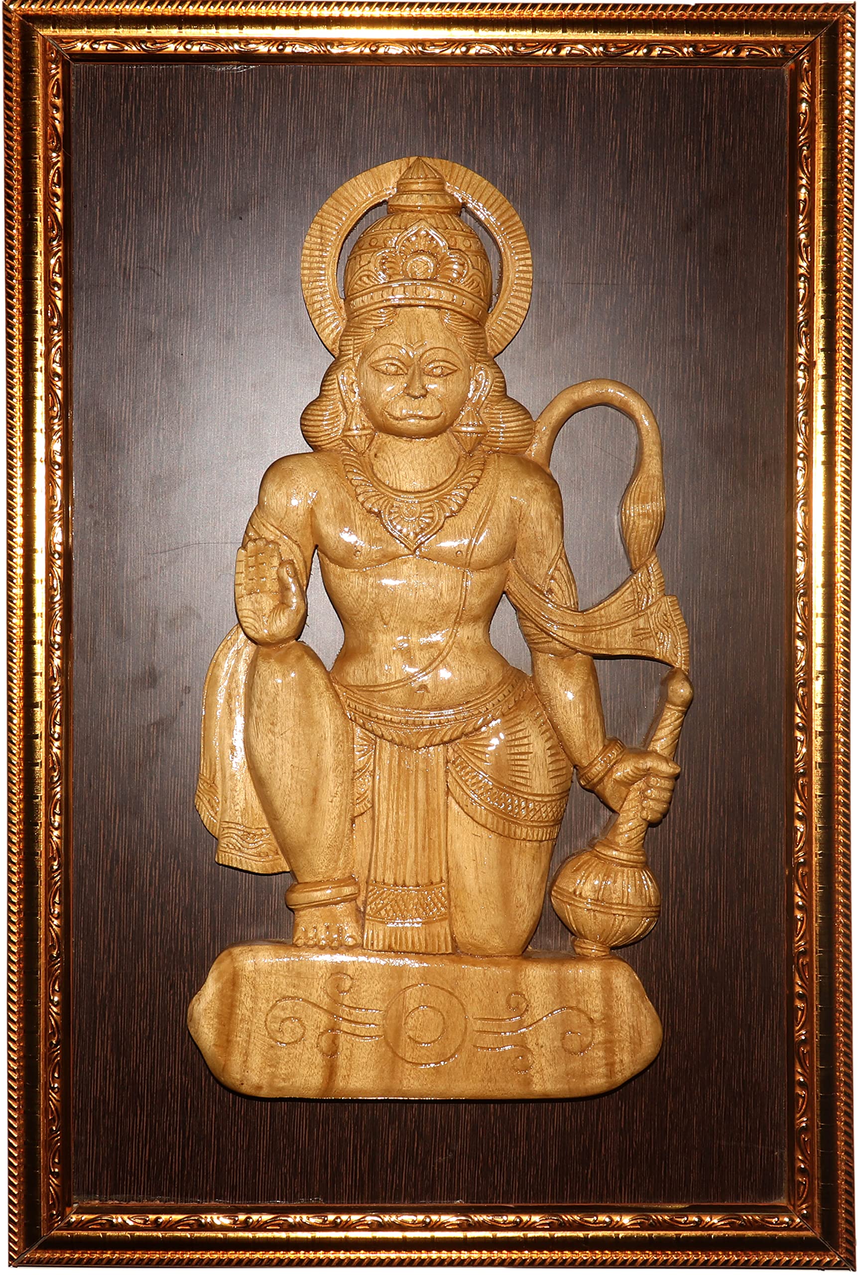 HomeHomeWall AccentsHangingSAHARANPUR HANDICRAFTS Hanuman Ji Murti Wall Hanging wooden Lord Balaji Bajrangbali Sankat Mochan Maruti Idol handicrafts Showpiece Home Dcor an pooja for God 54cm lengthclear1 in Box