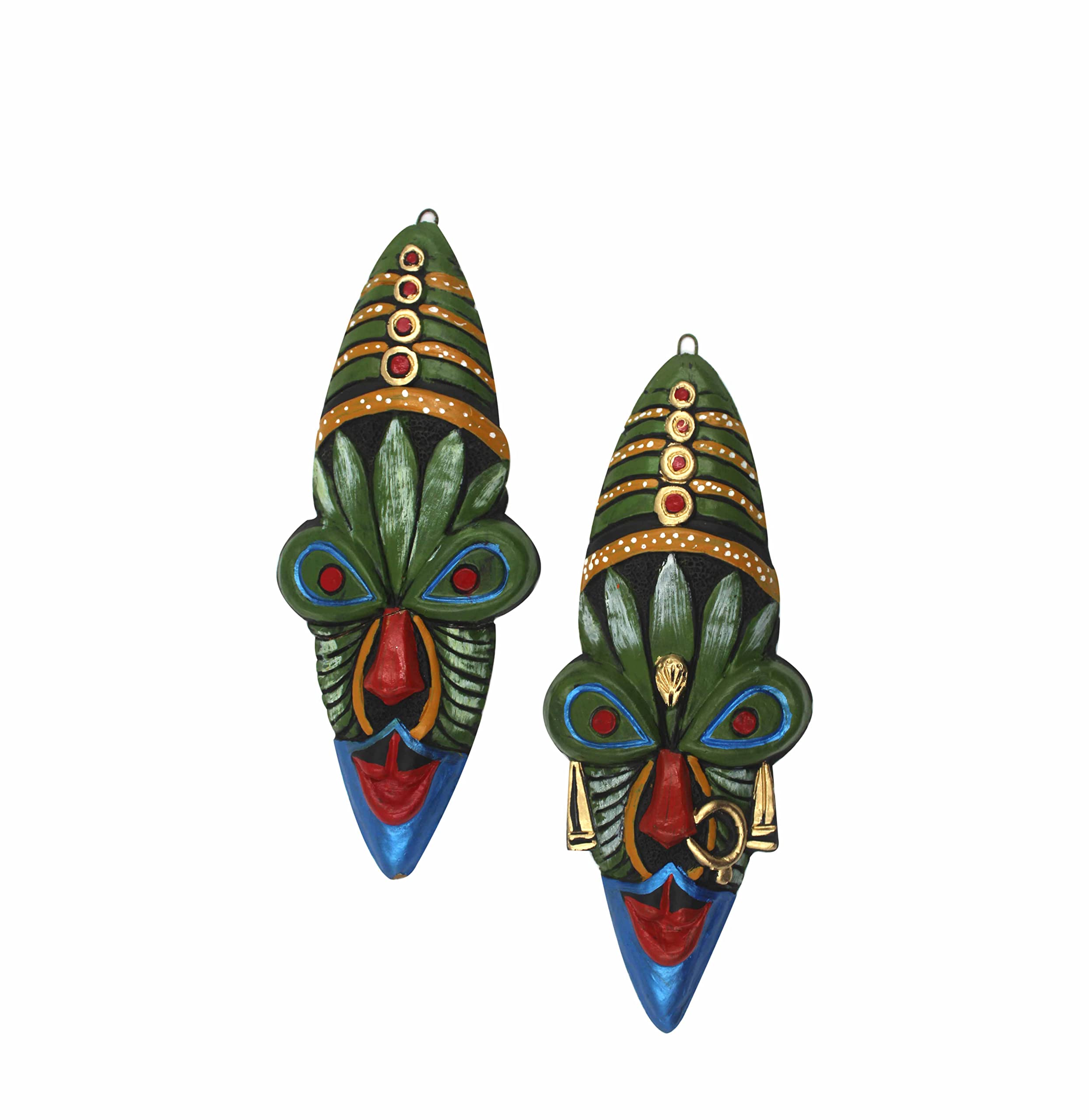 HomeHomeWall AccentsHangingSTONE WORK Present A Terracotta Wall Hanging Barfi Shape Combo Mask of Delightful Green Multicoloured Ideal for Home Decoration Or Gifting Purpose.(HXWXD=28X11X3)cm
