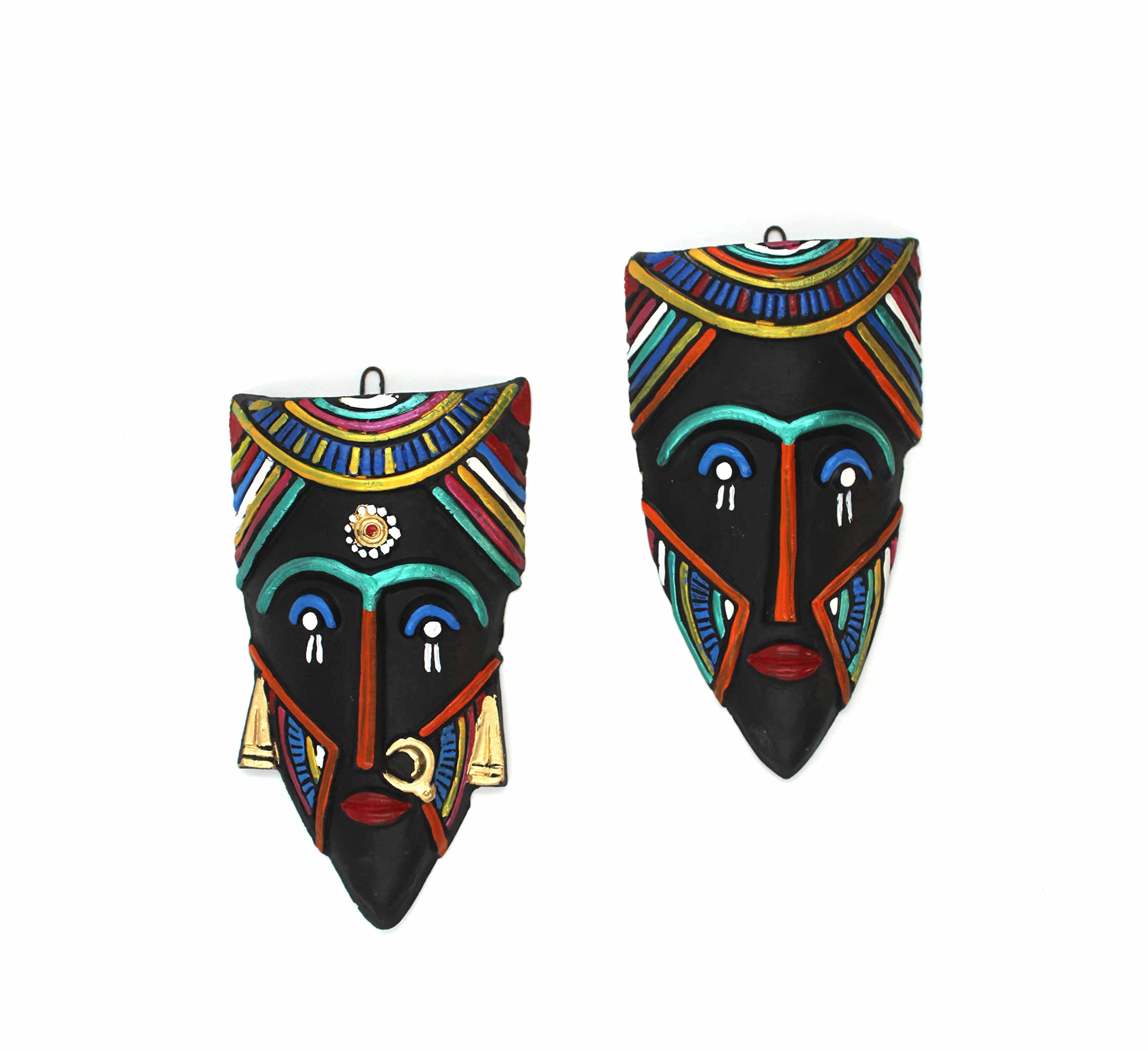 HomeHomeWall AccentsHangingSTONE WORK STONE WORK Present A Terracotta Wall Hanging Trangle Shape Combo Mask of Delightful Black Multicoloured Ideal for Home Decoration Or Gifting Purpose.(HXWXD=18X10X3)cm