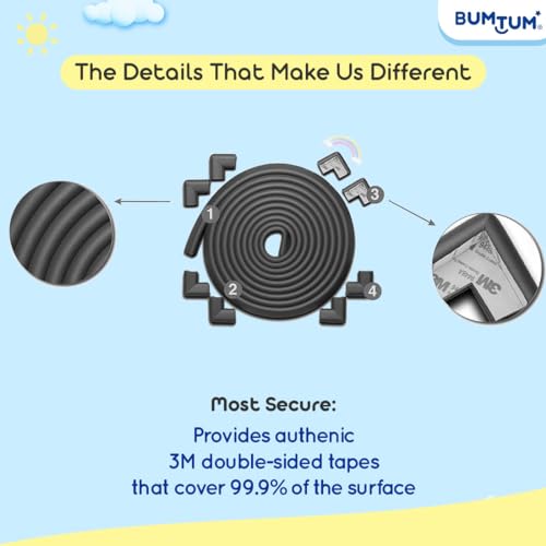 BUMTUM Baby Safety Strip Furniture Edge Guard Cushion Corner Cover 2 Meter Tape Infant | Edge Protectors for Glass, Furniture (Black)