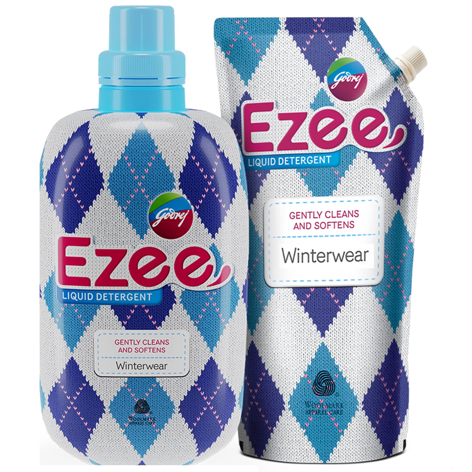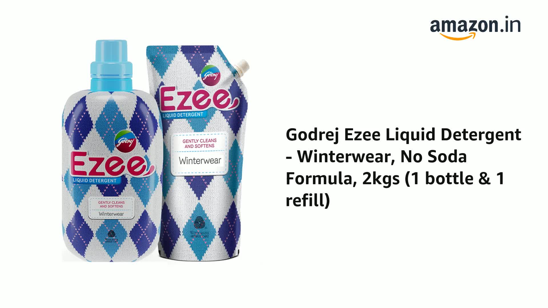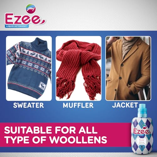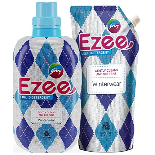 Godrej Ezee Liquid Detergent - 2kg (1 Bottle + 1 Refill) | for Winter-wear | Added Conditioner | No Soda Formula | Woolmark Certified