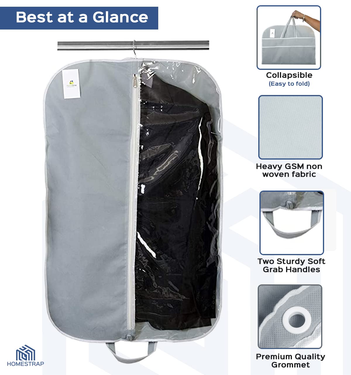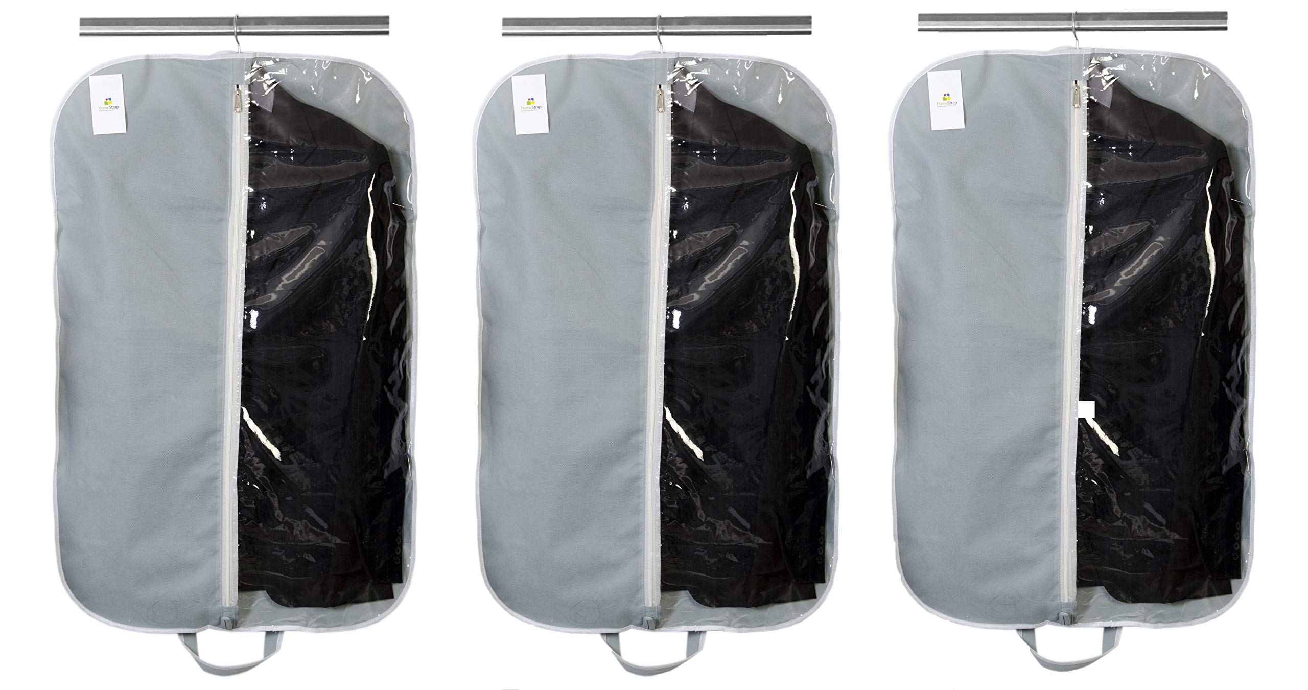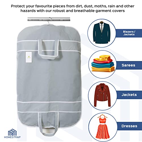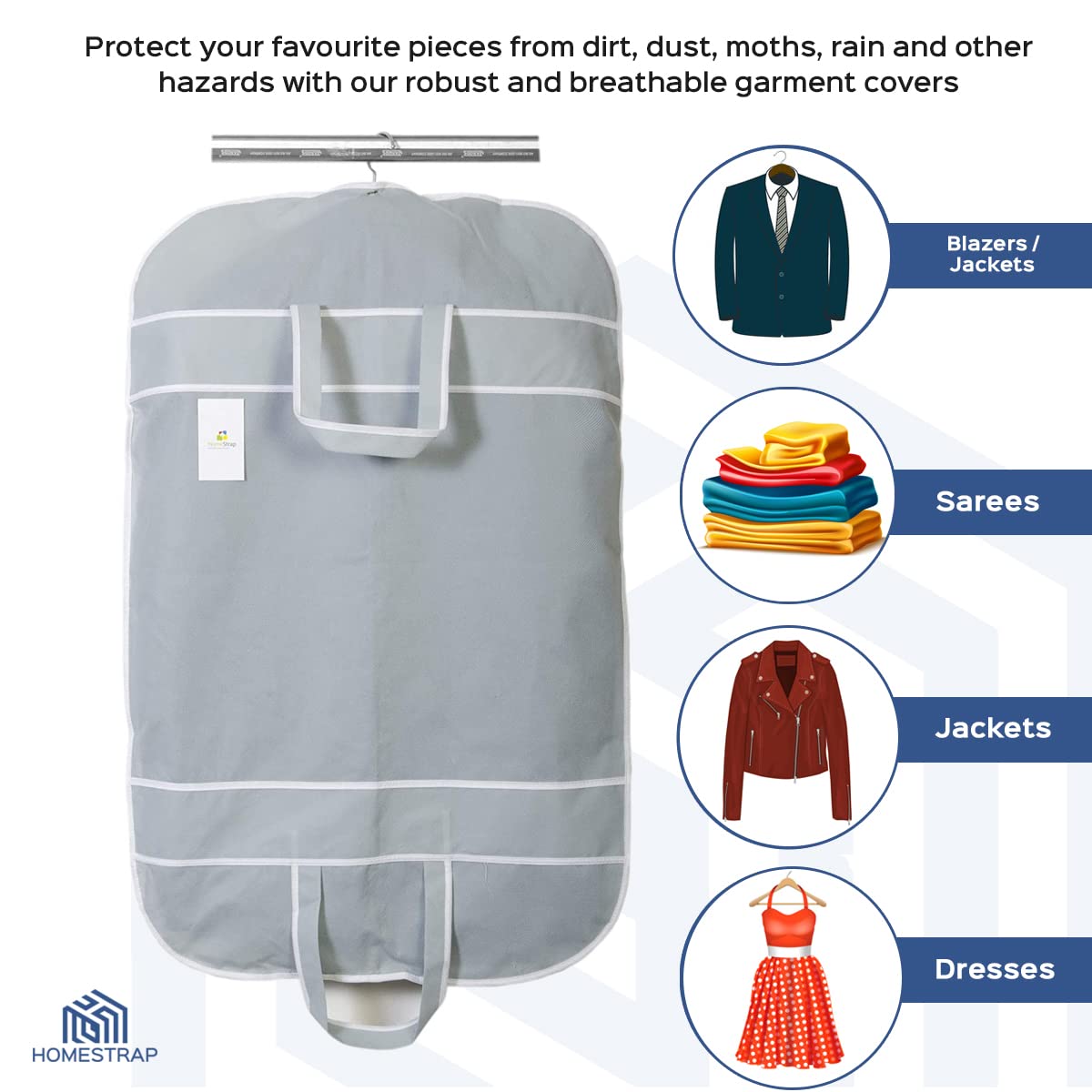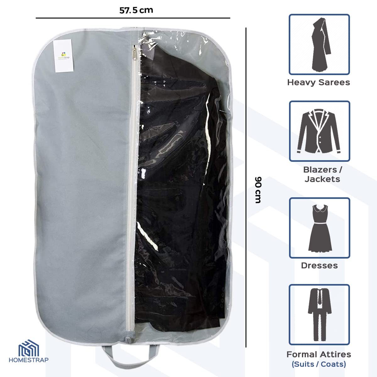 Homestrap Menâs Moisture Proof Coat Suit Blazer Cover with Half Transparent Side- Grey- Pack of 3