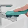 With the long brush its easier to reach tight spaces like the areas around faucets in the kitchen and bathroom.