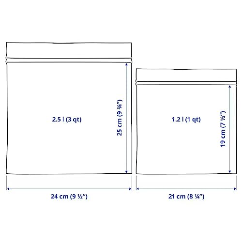 Sizes:25 bags 2.5 l (24x26.5 cm) and 25 bags 1.2 l (20.5x20.5 cm).