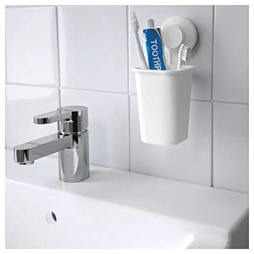 Ikea Tisken Toothbrush Holder With Suction Cup White With Tss Cotton Balls(5 PiecesRecycled Abs Plastic)