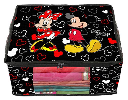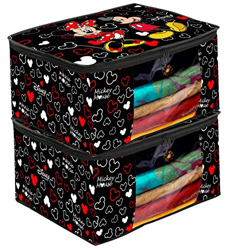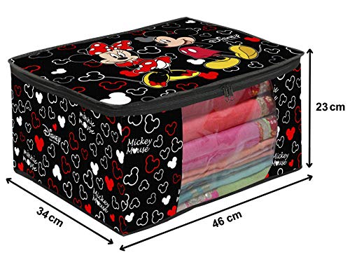 HomeHome ImprovementHousehold SuppliesKuber Industries Disney Mickey Print Non Woven Clothes Organiser|Zipper Closure|Wardrobe Set with Transparent Window|Extra Large 46 x 34 x 26 (Black) -HS_35_Square(Cotton)