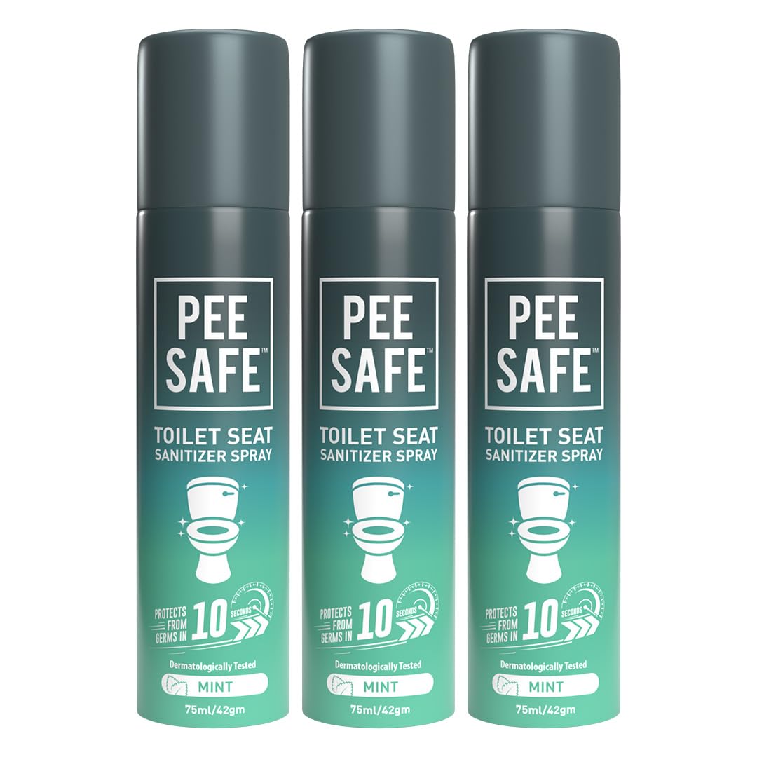 HomeHome ImprovementHousehold SuppliesPee Safe Toilet Seat Sanitizer Spray (75ml - Pack Of 3) - Mint| Reduces The Risk Of UTI & Other Infections | Protects From 99.9% Germs & Travel Friendly | Anti Odour, Deodorizer
