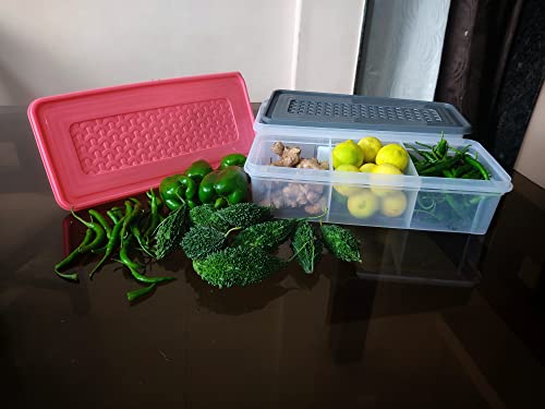 Shubh Empire 3 Partition Fridge Storage container Boxes OrganizerVegetable Refrigerator Plastic Storage Box For KitchenFor dry/Liquid foodStackable Microwave Safe Container For Fish Meat-Pack Of 2