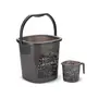 Square 2 Pieces Plastic Bathroom Set (Bucket: 25L, Mug: 1.5L, Black)