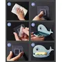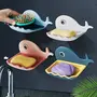 HomeHome ImprovementHousehold SuppliesWolpin Soap Case for Bathroom Kitchen (Set of 4 Pcs) Kids Self-Adhesive Sticker Soap Dish Holder Water Drain Plastic Fish Design