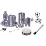 Dynore Stainless Steel 21 Pcs Bar Set - Delux cocktail shaker - 750 ml, 2 Double sided peg measure, Double wall ice bucket, Ice tong, Bottle opener, Round coaster, Bar tray, Strainer, 2 pourer, Bar spoon, Ash tray, wine cooler, Hip flask 7 oz, 2 Shot glas